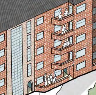 Share balconies between apartments foster relationships between neighbours. We need a wheelchair accessible apartment.