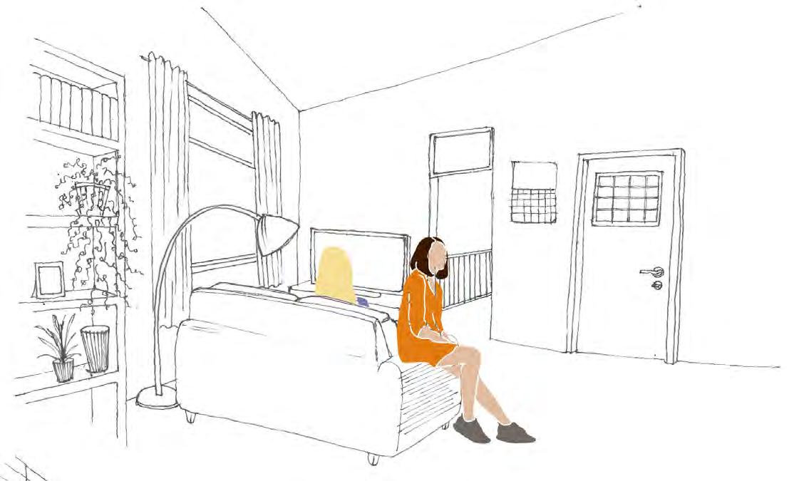 INTERGENERATIONAL APARTMENT BAY WINDOW WITH VIEWS ONTO SHARED BALCONY. LIVING