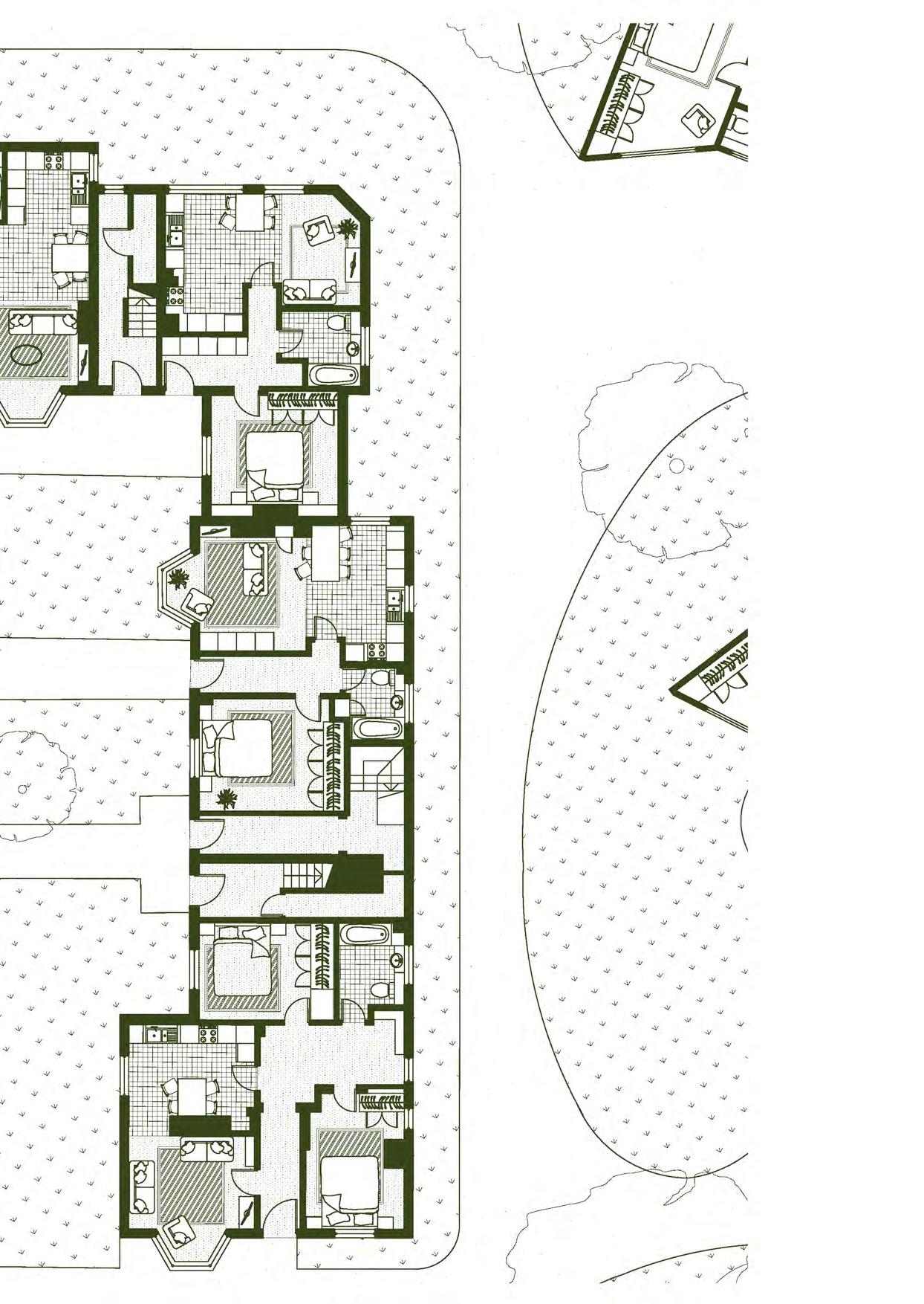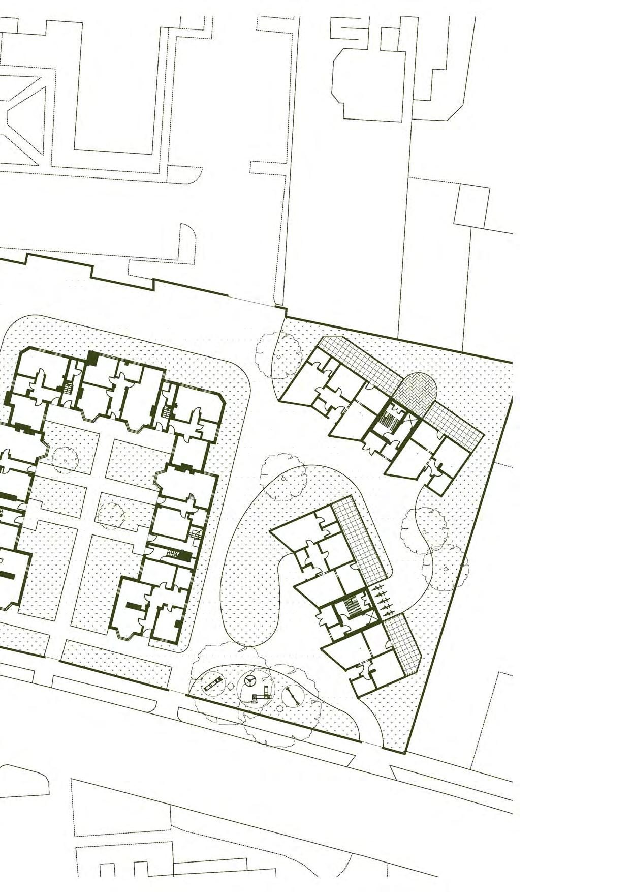 The following pages outline how a series of nonspecific arrangements and typologies can be converted into a fully detailed housing typology. It uses a chronology of construction steps that increase in complexity as required and can be implemented in both its most simple format, or as a more complex design offering opportunities for endless configurations. Likewise, alternative facade treatments means that although internal layouts between developments will be largely the same (based on the same grid etc), no two developments will externally look identical.