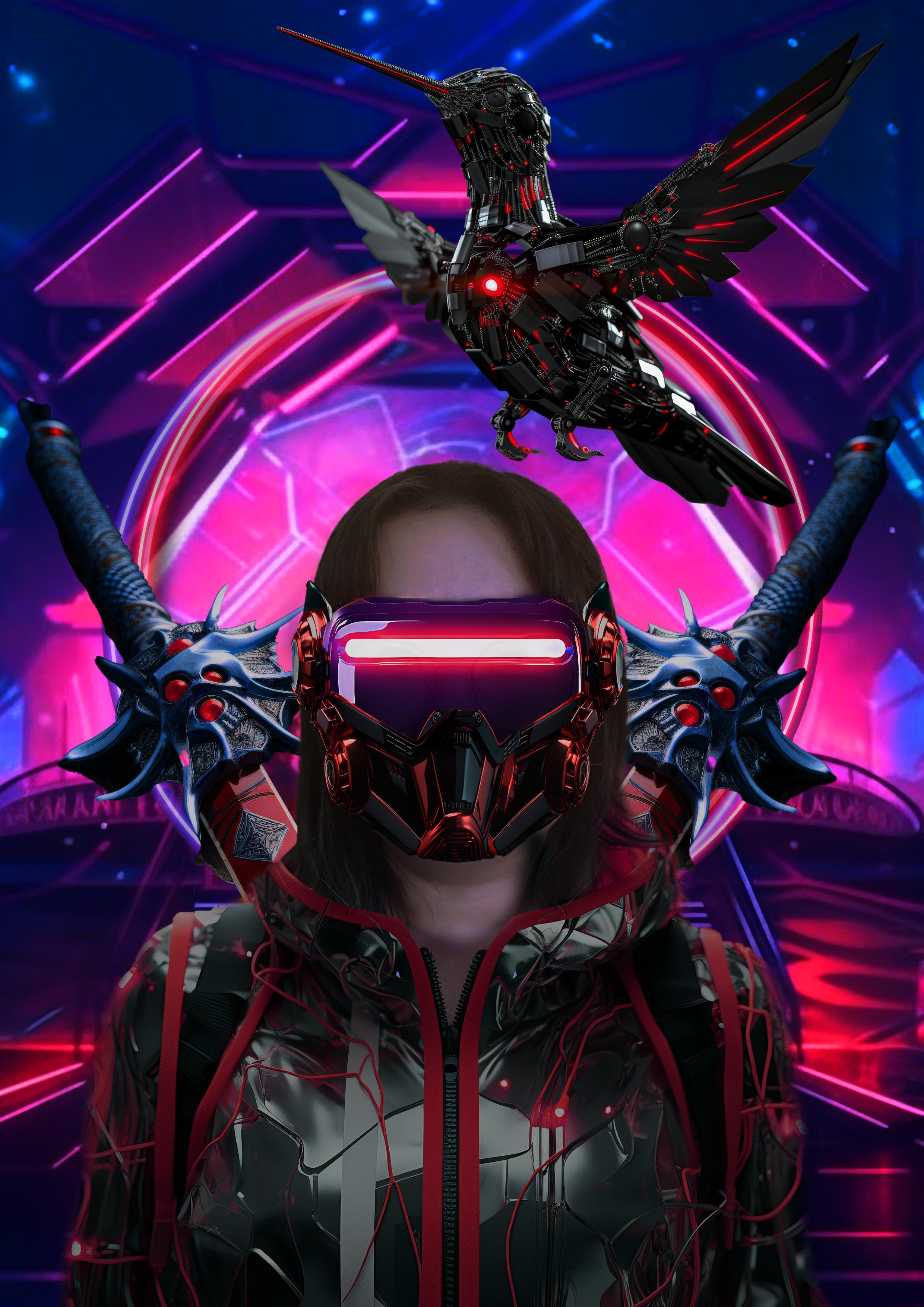 adjusted its color to match the suit. I then masked out the VR glasses and tweaked their colors to harmonize with the overall design.