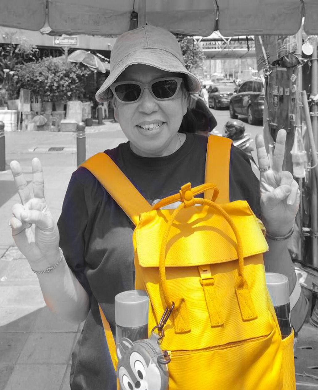The Potrait shot was edited to a monochrome picture usuing the curves, with only the yellow bag highlighted using a mask layer.