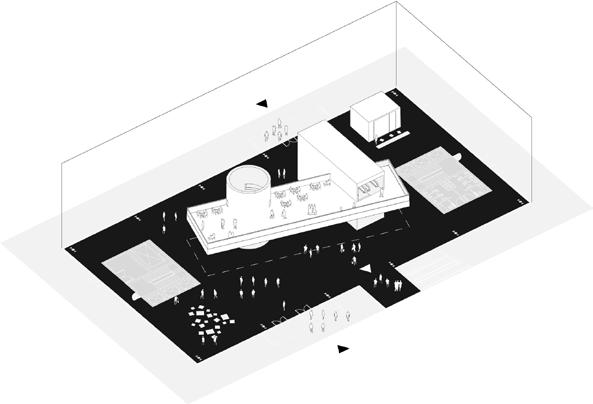 The proposed project aims to keep the existing usages of trade and transport and add more usage to the plot. The existing usages are put into a new order and are improved by adding missing facilities such as sanitary services and storage on the ground floor, which stabilize the existing function. A proper bus stop has been designed, containing a shaded place to wait and an auto grill. By adding another vertical layer to the plot more space is created to accommodate these extra people. The new usages consist of education, leisure, and culture and bring a social aspect to the current situation, which is based mainly on economic activities. These functions take place on the ground and first floor.