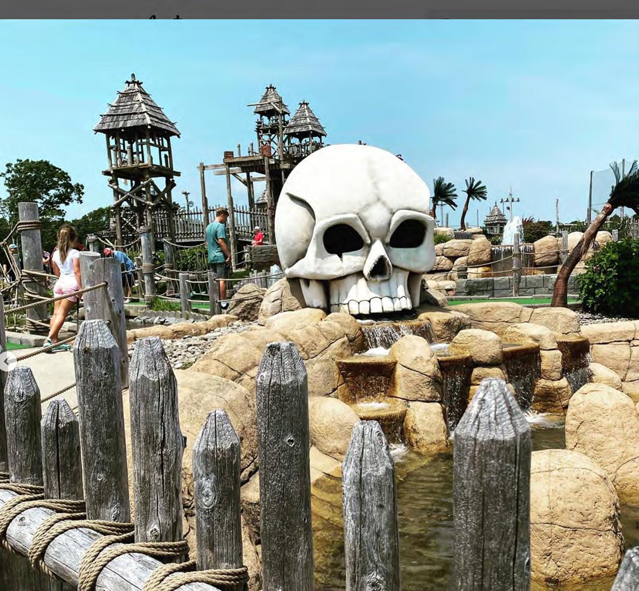 Skull Island Adventure Golf and Sports World: This activity center first opened as a miniature golf course in 1961 on ten acres of land on Route 28 in South Yarmouth. The traditional flat course with lollipop and windmill obstacles was augmented by batting cages and a driving range, and an arcade was added in the early 1980s. The facility was updated in 2001, and the resulting Swiss Family Robinson island-themed course, with its iconic giant white skull with lighted and steam-spewing eyes, features a beautifully landscaped and challenging course. Players golf past cascading waterfalls, over “alligator infested” waters, through a haunted treasure cave, and up into a Swiss Family Robinson Tree House. The adjoining Sports World center offers plenty of additional fun, with a driving range, go-karts, batting cages and a large arcade. The easy-to-reach property can also host birthday parties, family get-togethers and other group events for all ages. 934 Route 28, South Yarmouth, skullislandcapecod.com