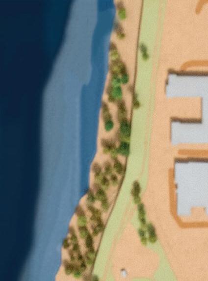 To mitigate run-o into the Mississippi River, two pedestrian walkways leading to the site from the Hawthrone neighborhood were implemented Various rain water management systems such as tree pits, previous paving, and bioswales are incorporated along these walkways.