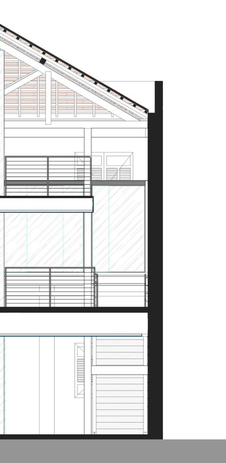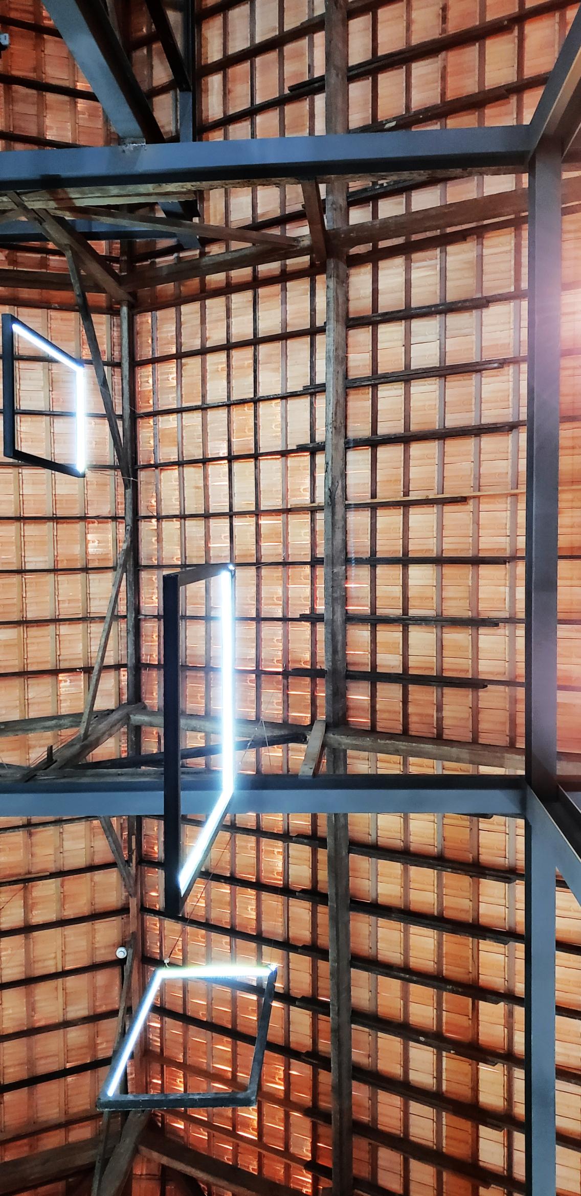 Previmos uma estrutura auxiliar metálica para sustentação do telhado, realizamos a troca do madeiramento não aproveitável e fizemos o reassentamento das telhas sem alterar a volumetria original da edificação. Com o intuito de mostrar àquele que visita a edificação a tecnologia utilizada pra ergue-la, fizemos a retirada do reboco - já não original, de concreto - e deixamos o telhado aparente. Tudo isso buscando valorizar a história da edificação e da cidade.