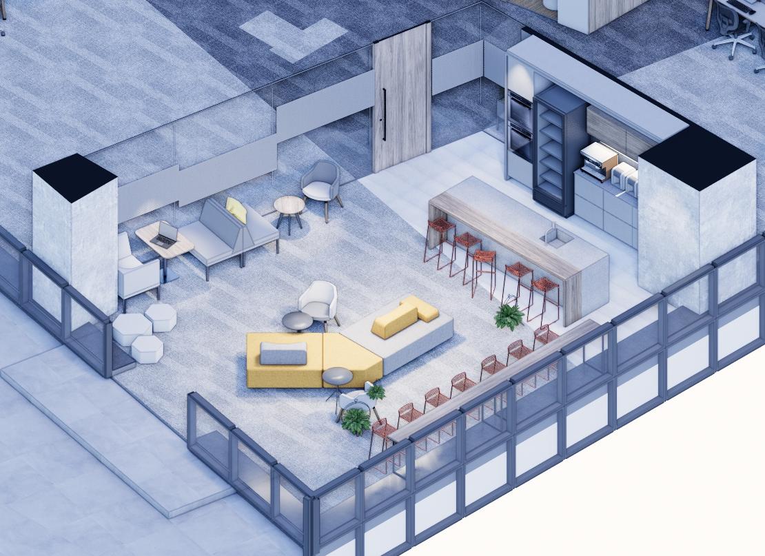 Apresentamos soluções que atendessem as demandas por áreas de open space ao mesmo tempo em que possibilitamos a utilização mais confidencial de alguns usos.