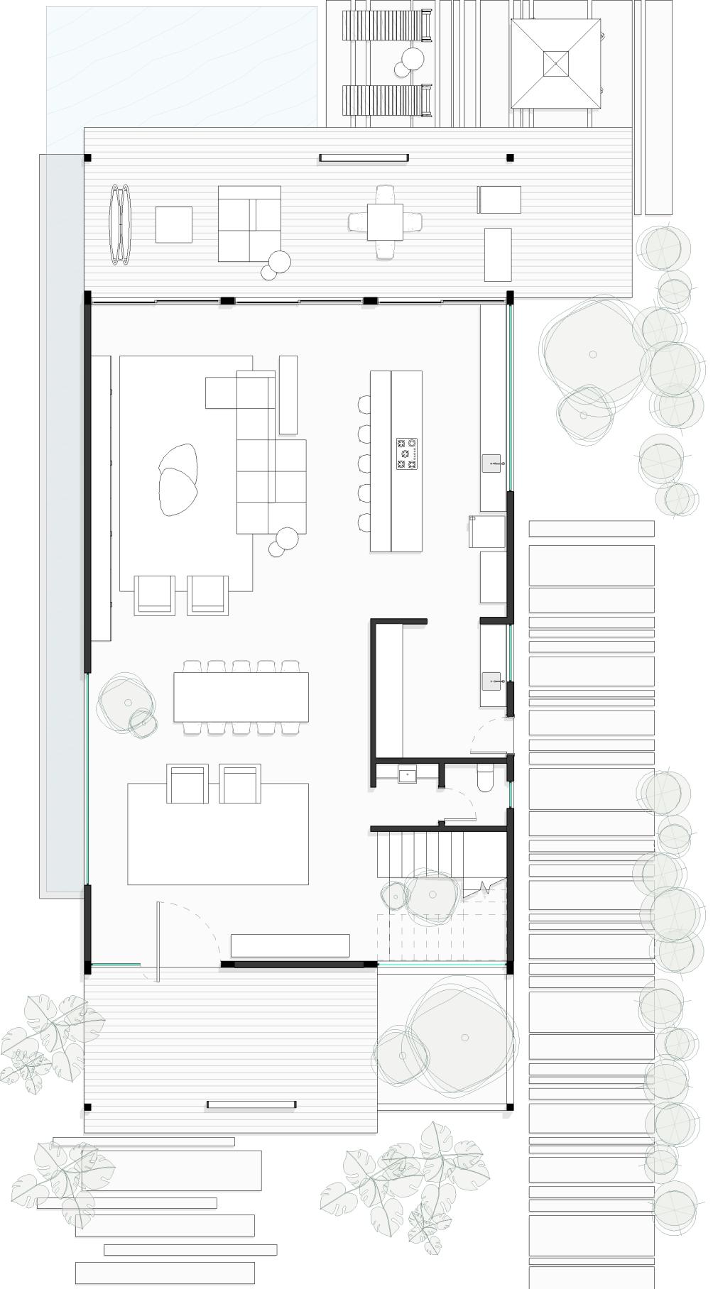 Assim como as premissas do Edifício Level, a Brasil ao Cubo buscava criar um protótipo para venda comercial de casas modulares. Dessa maneira, buscamos trabalhar com plantas livres, concentrando áreas molhadas em um mesmo módulo e usando de vãos livres para facilitar a produção e montagem apresentando uma arquitetura de qualidade. Para este caso, a proposta era uma residência térrea para um lote urbano padrão.