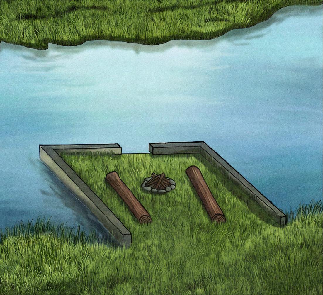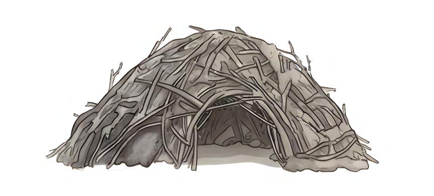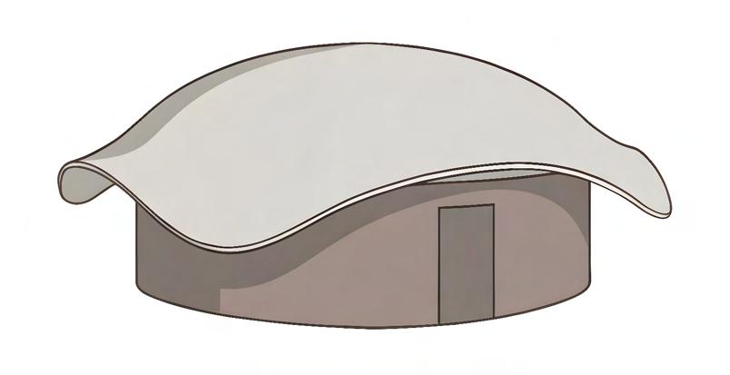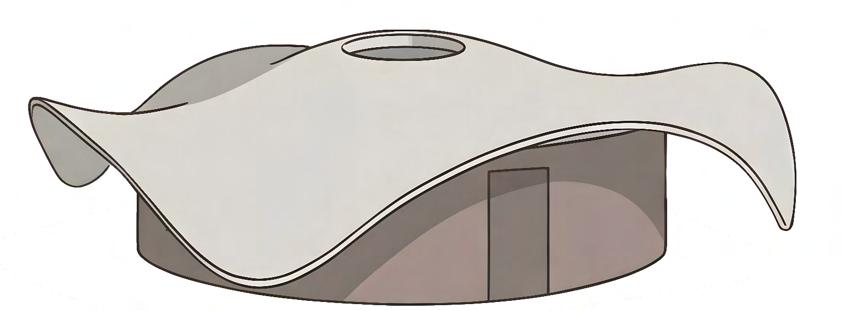 2- The lodge is abstracted into a simple cylindrical structure with a protective domed roof.