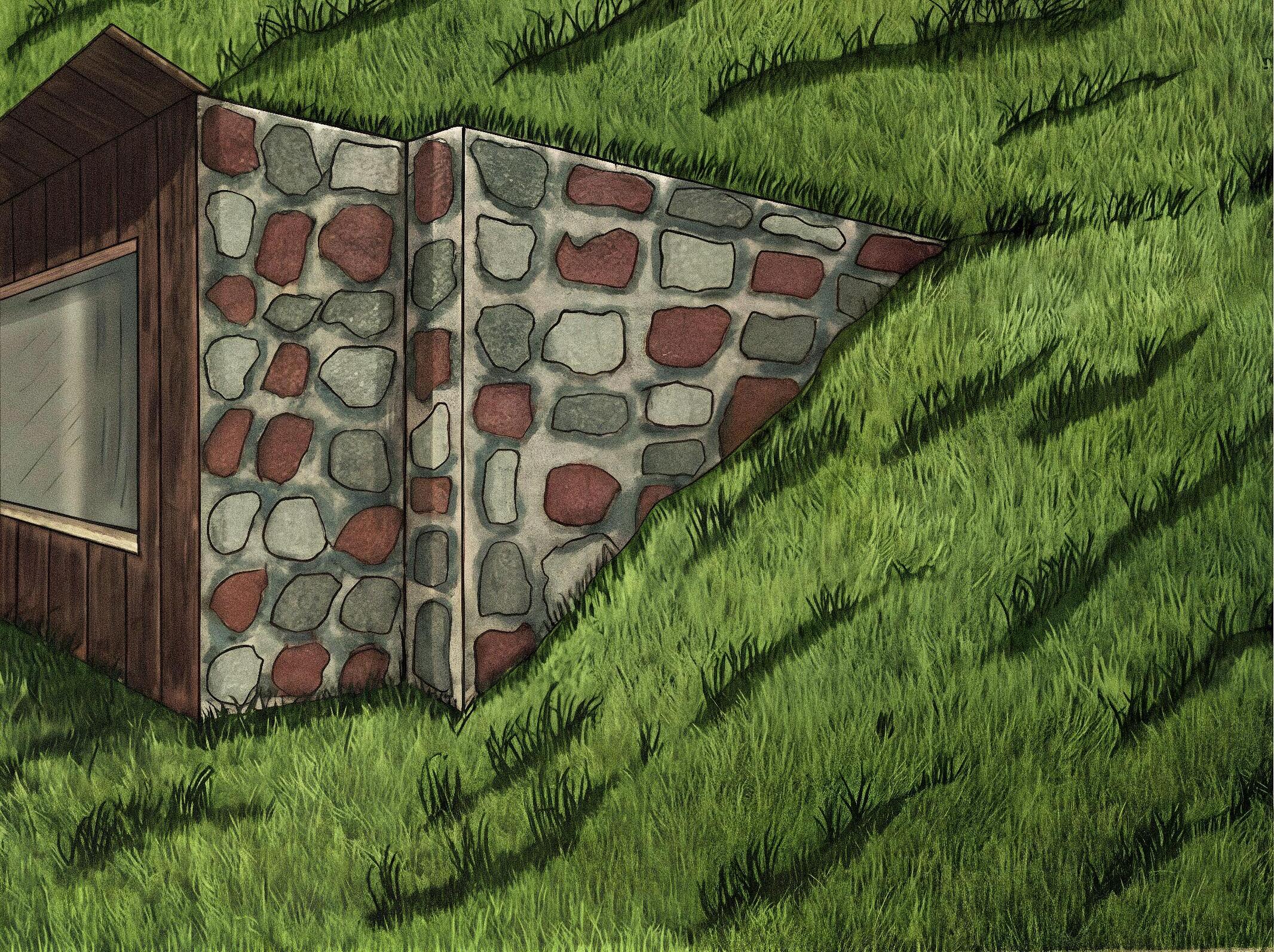 2- A portion of the hillside is excavated to carve space for the sauna building. This cut into the terrain allows the architecture to become embedded within the landscape while using the surrounding earth as natural insulation.