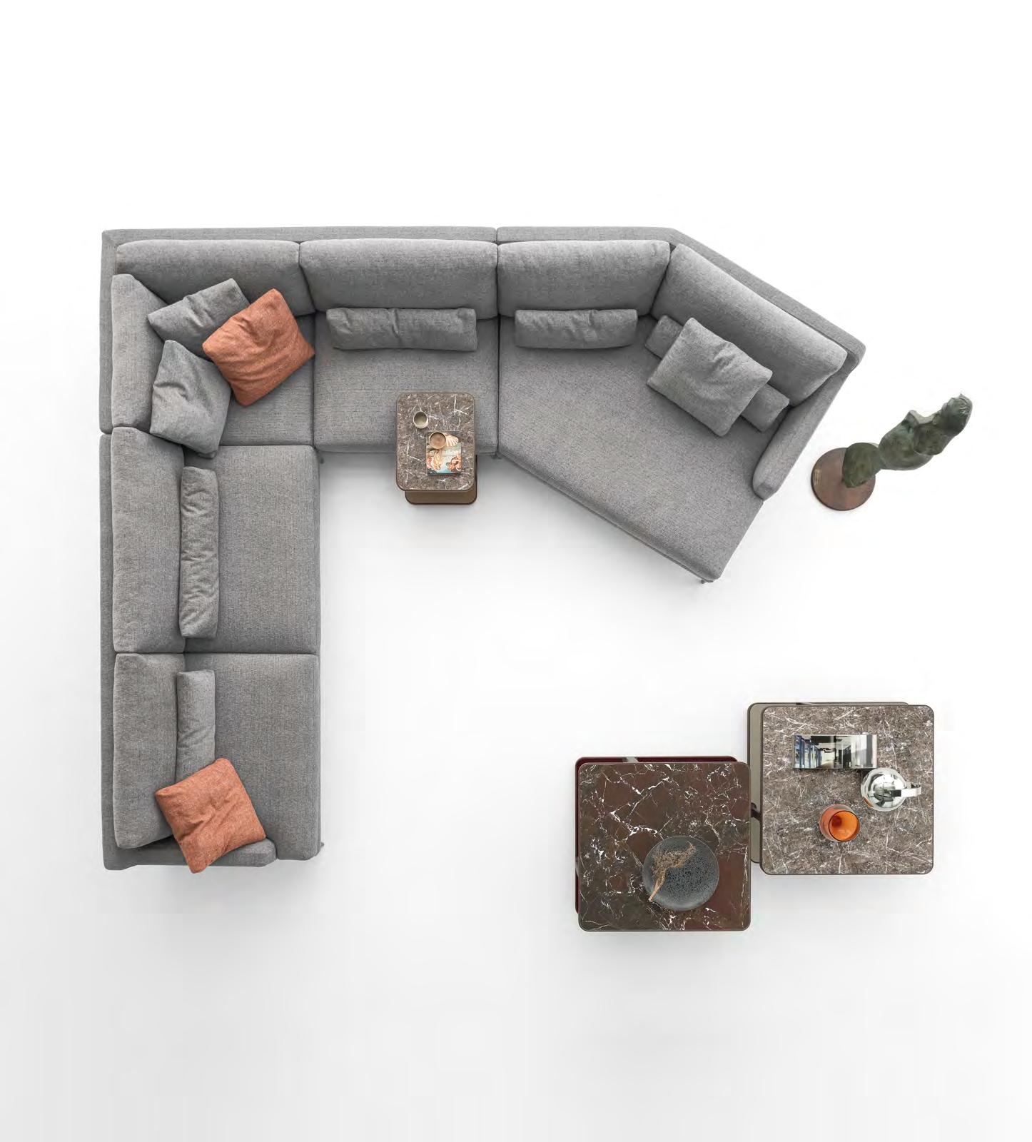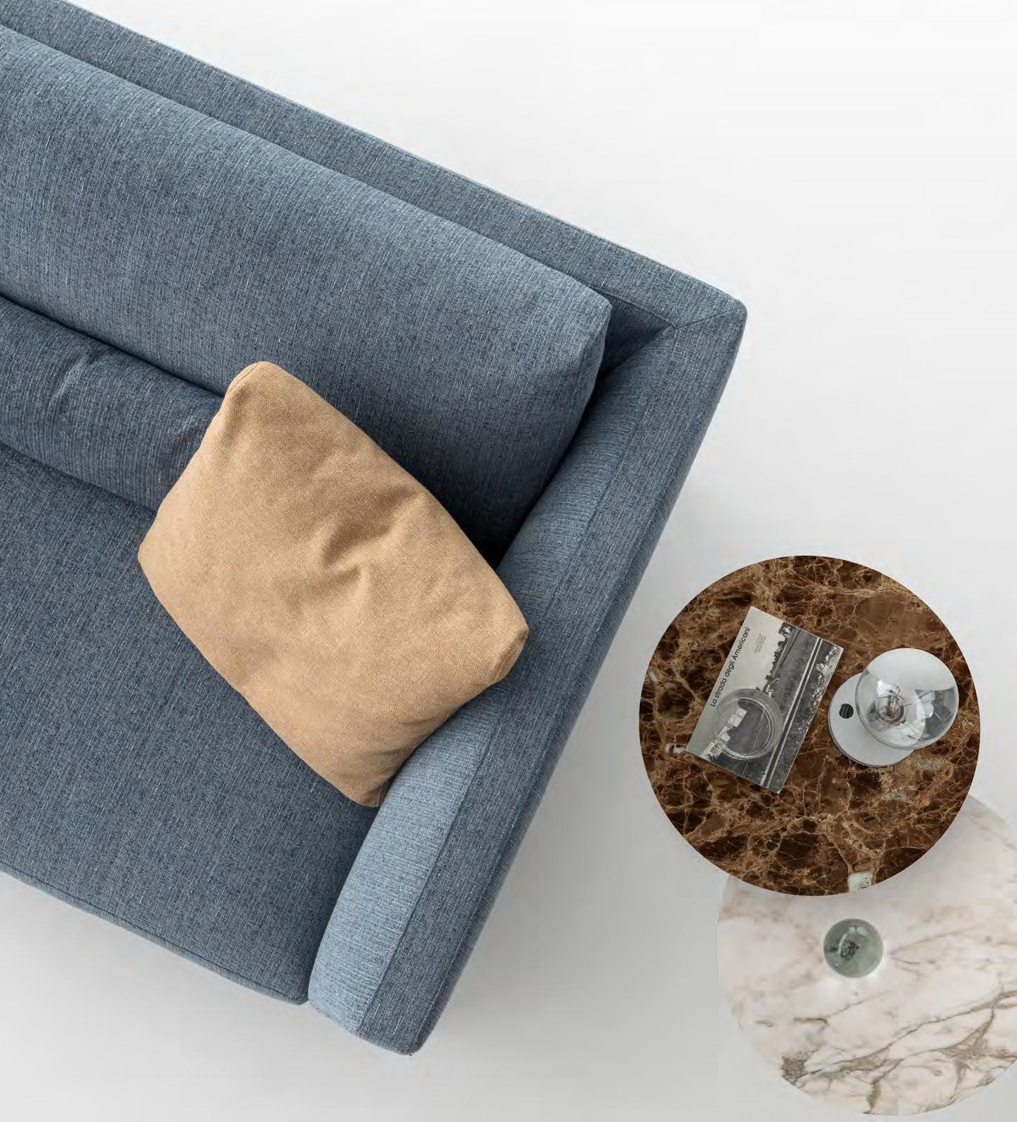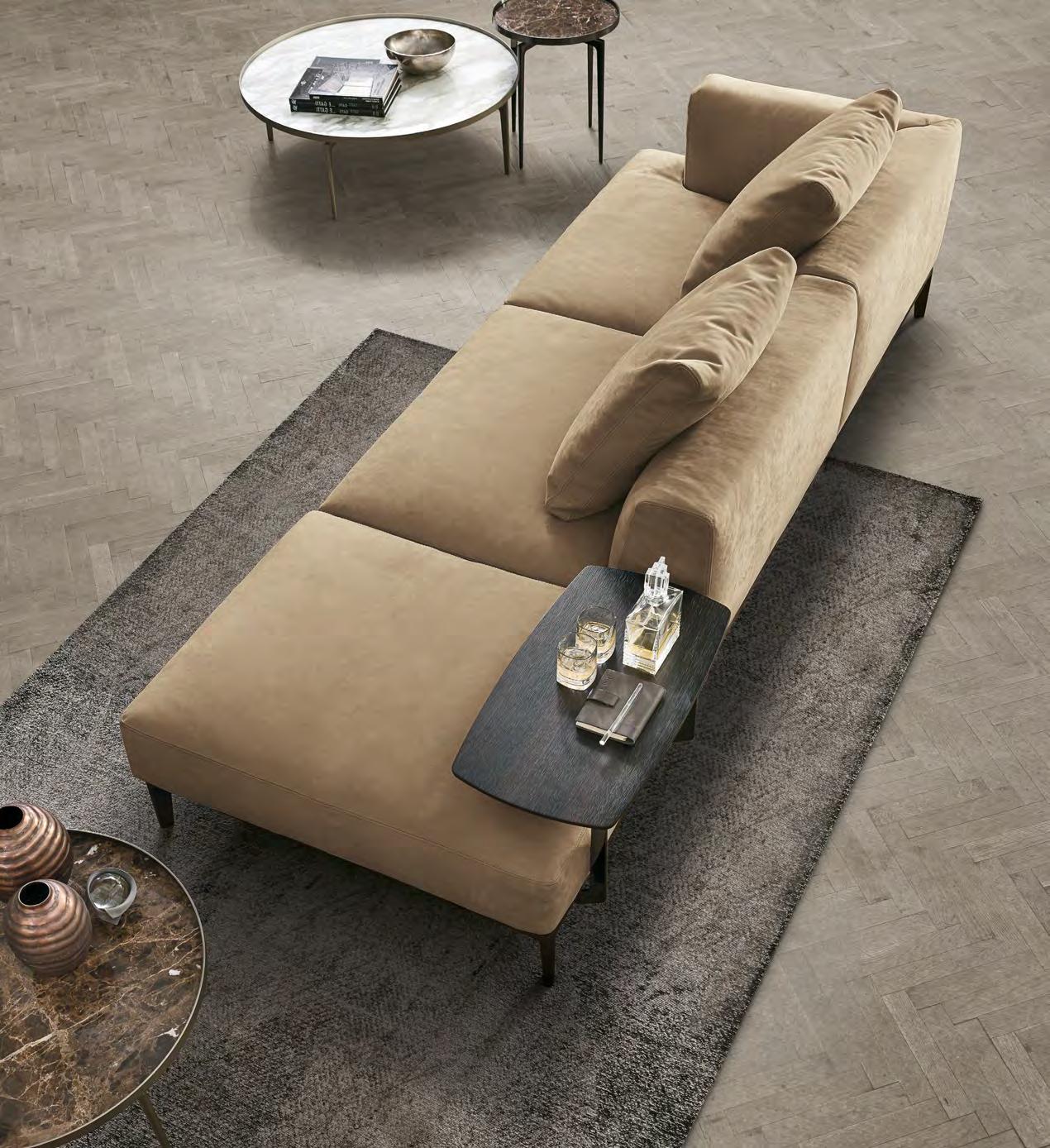Small or larg e islands of comfort to enjoy after a hard day. Safe places that protect against the daily frenzy and offer opportunities for pure relaxation. Real places, to be enjoyed and shared. Each sofa tells its story and reveals its personality through the shapes that characterise it, the upholsteries that enhance it and the details that make it unique. You sit on it to find yourself, to seek out your passions and for the pleasure of proximity with others.