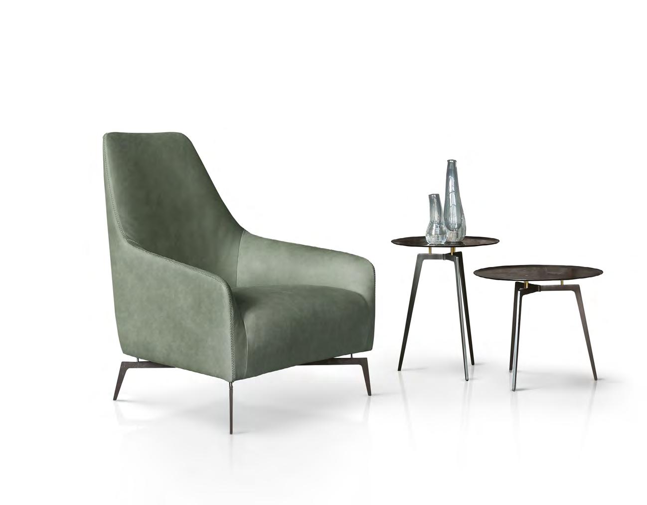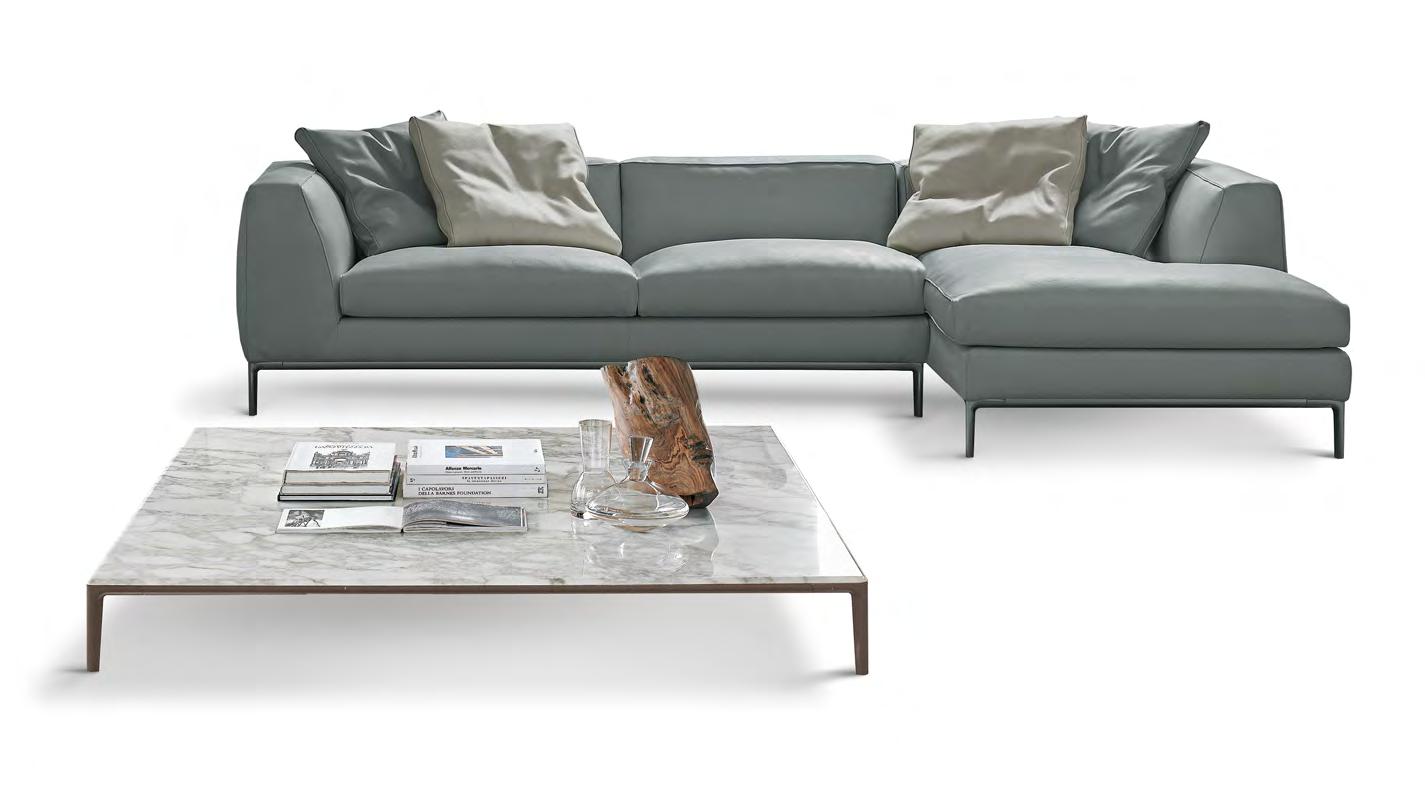 The thin feet lightly support the solidity of the sofa and perfectly match the metal structure of Sirio coffee tables.