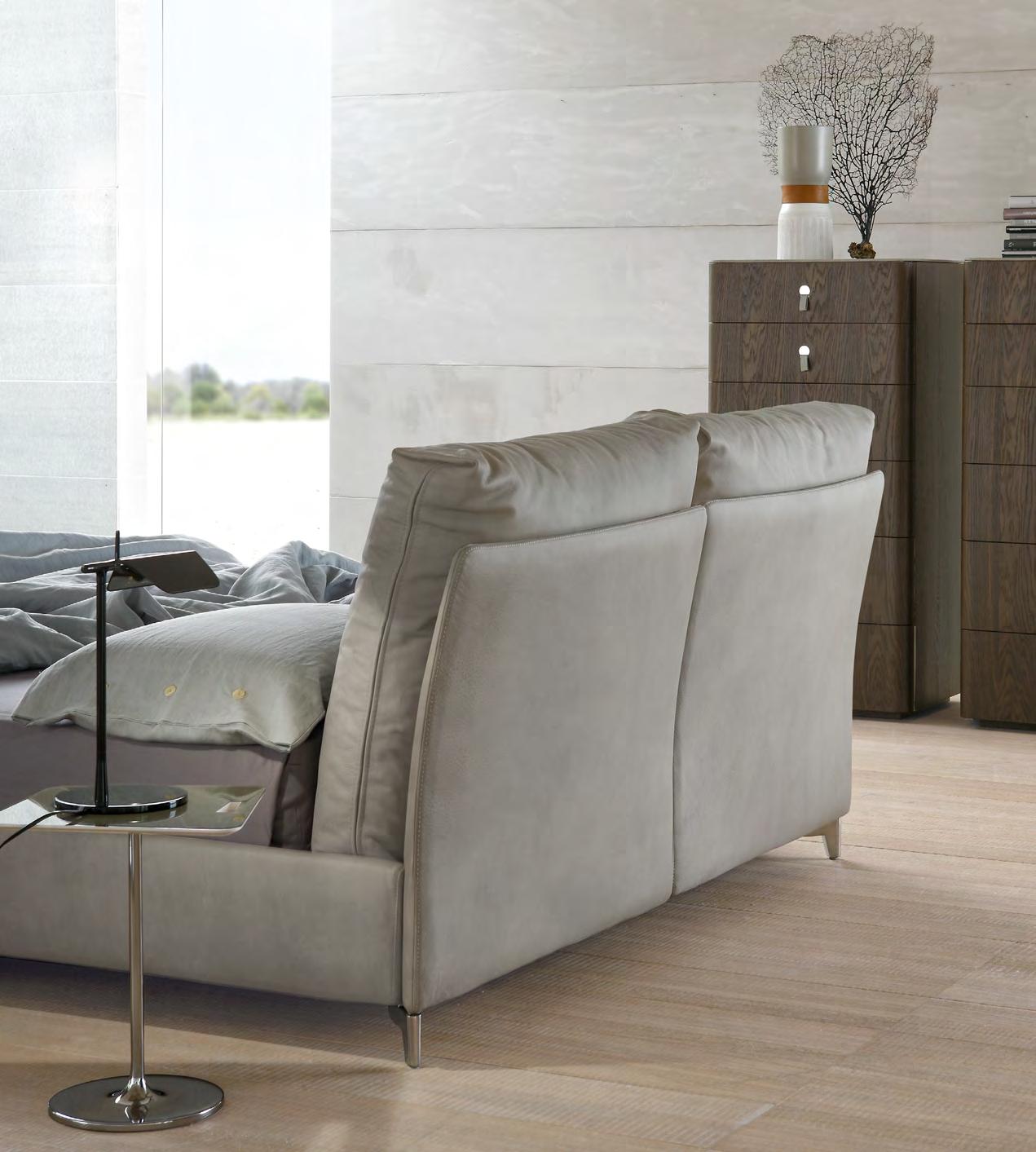 Un’ampia e sinuosa testata crea ambientazioni raffinate e suggerisce il massimo comfort e relax. Pelli pregiate e lavorazioni accurate garantiscono prodotti di alta qualità.