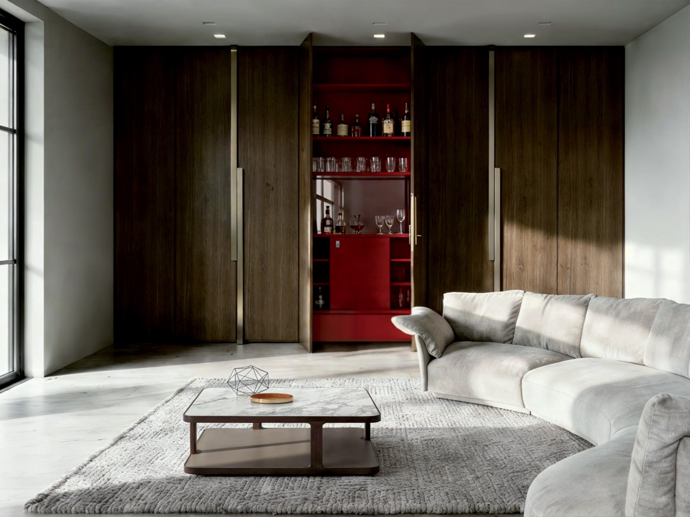 FORMA non si limita al contenimento: i moduli possono integrare mobile bar, vani attrezzati e molteplici soluzioni funzionali, progettate per adattarsi alle esigenze specifiche dell’utente, con coerenza progettuale, precisione costruttiva e qualità dei materiali.