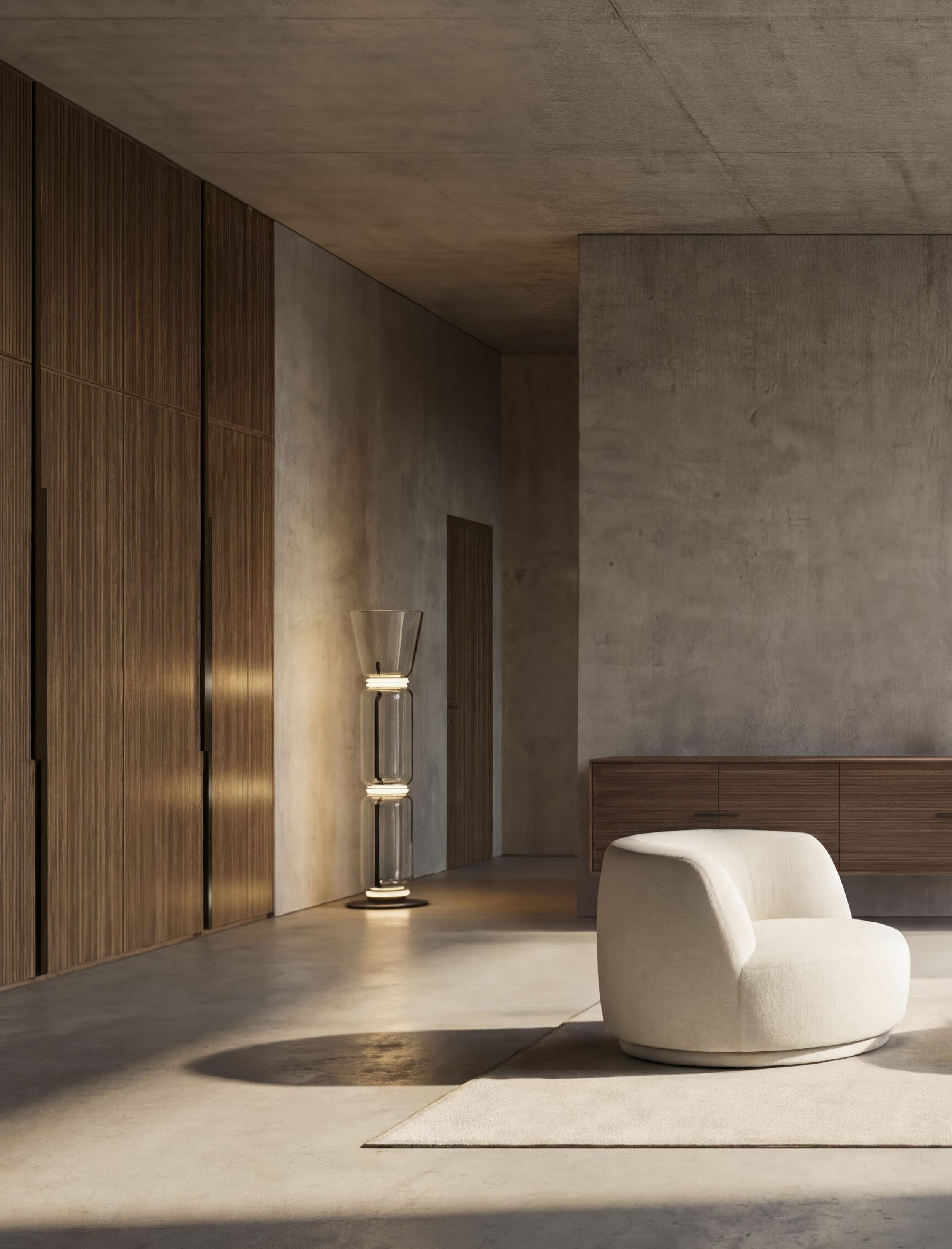 FORMA collection is a wall-mounted system designed to integrate seamlessly into both living and bedroom areas. A series of storage units conceived “flush with the wall”, designed to transform the entire surface into a discreet, almost imperceptible volume capable of concealing functional and surprising solutions within.