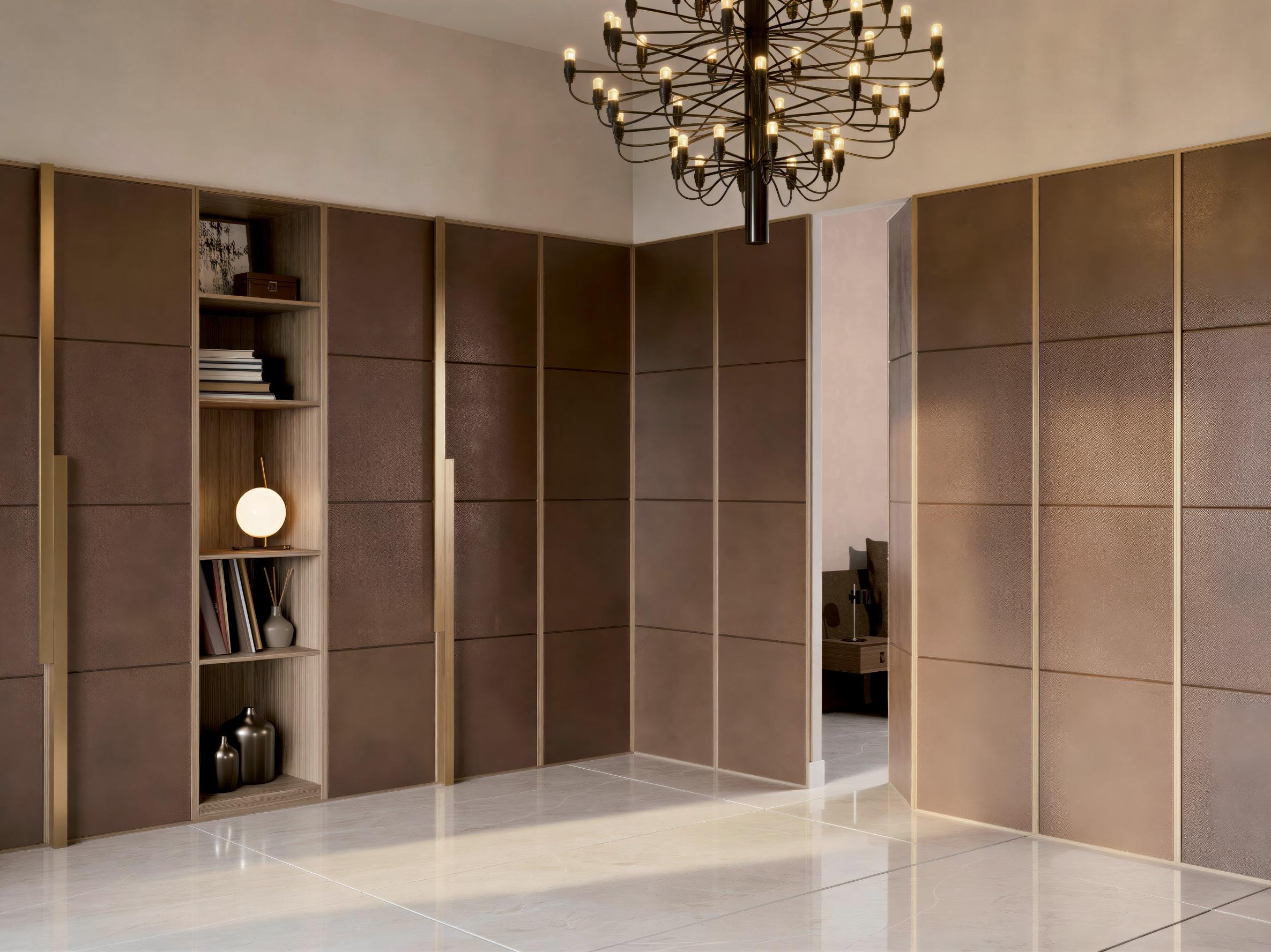 Each module can be freely combined, creating either continuous or segmented solutions. FORMA can clad entire walls from floor to ceiling, interact with boiserie and doors, or divide spaces without masonry work, transforming storage into a true architectural element—functional and decorative.