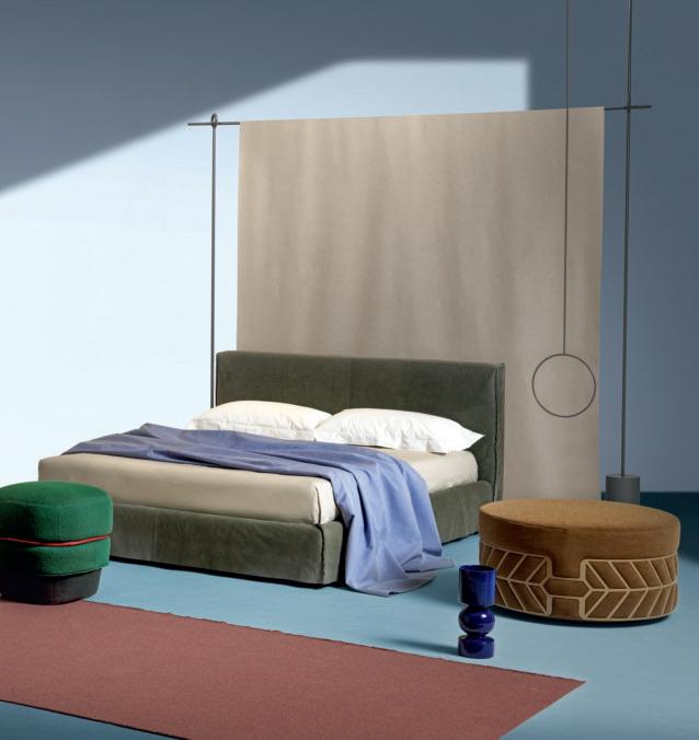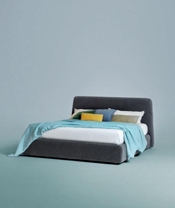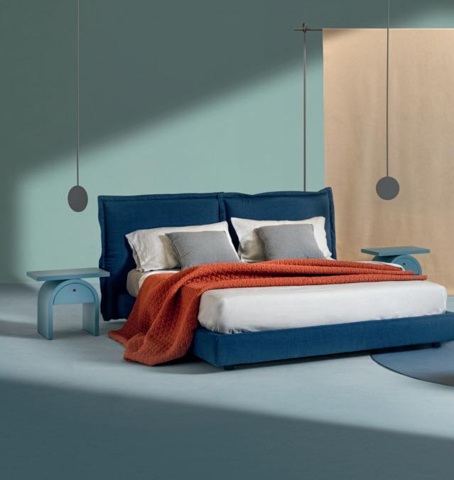 Face is a bed of refined simplicity: the headboard is like a soft, enveloping pillow, which depending on the selected fabric covering can have a young, informal look or a classic image.