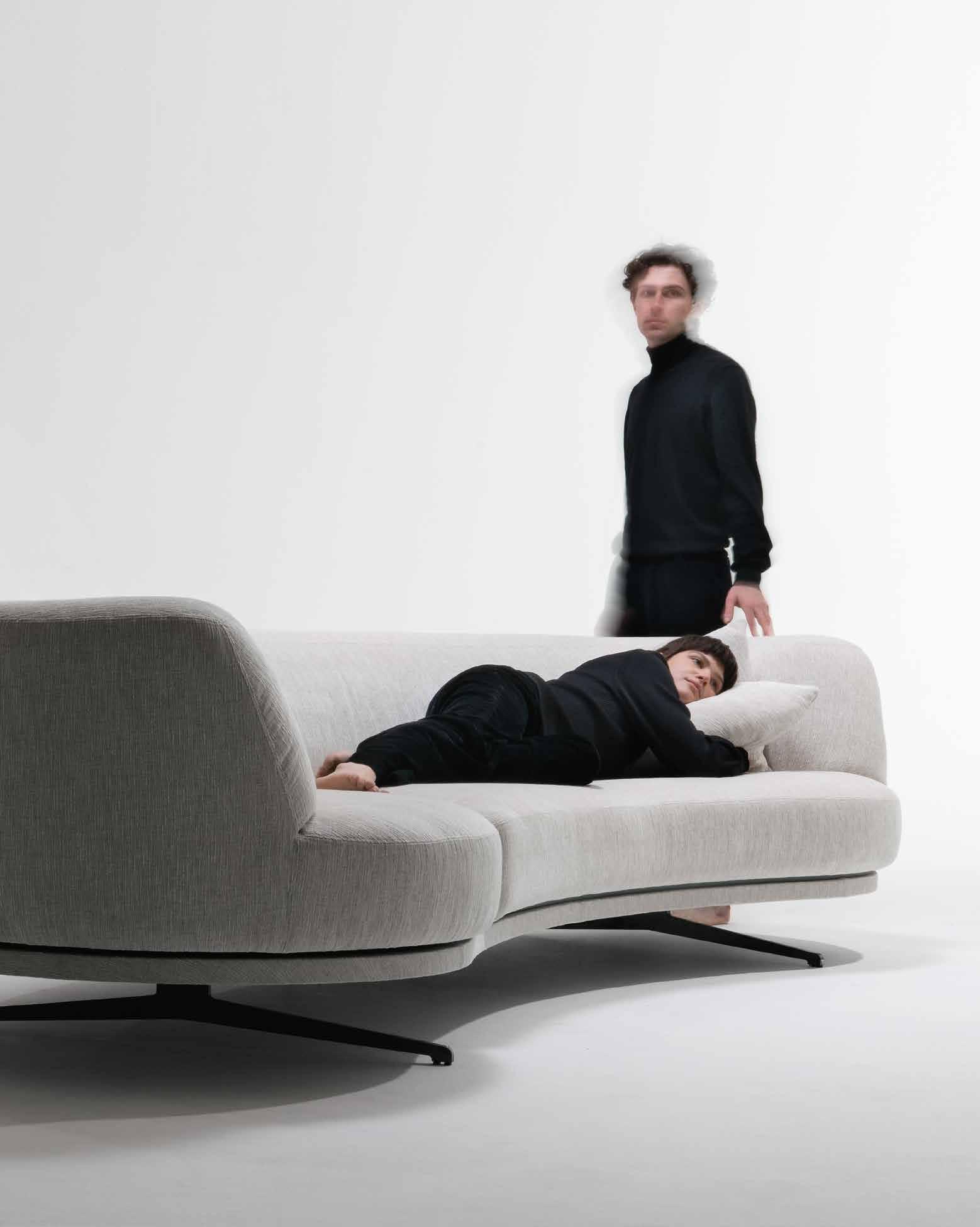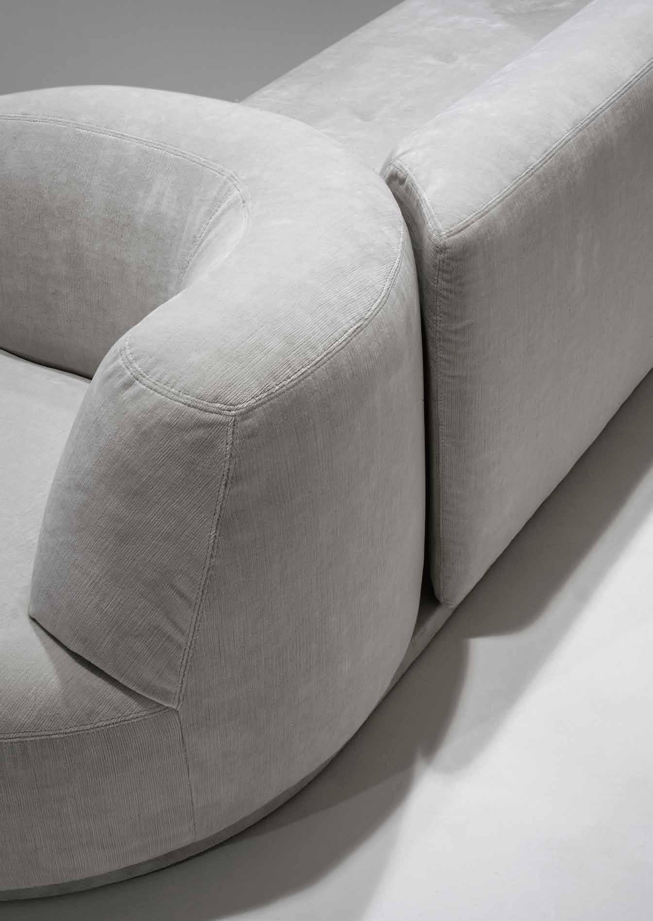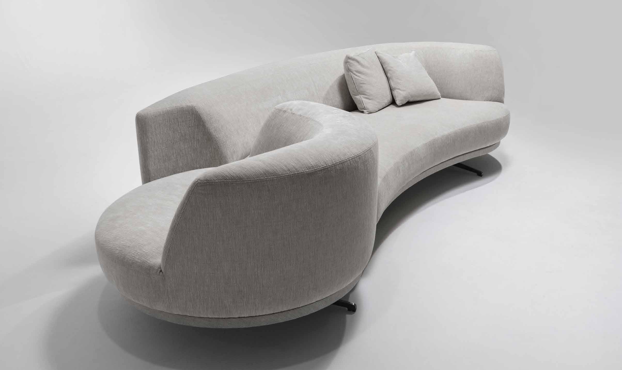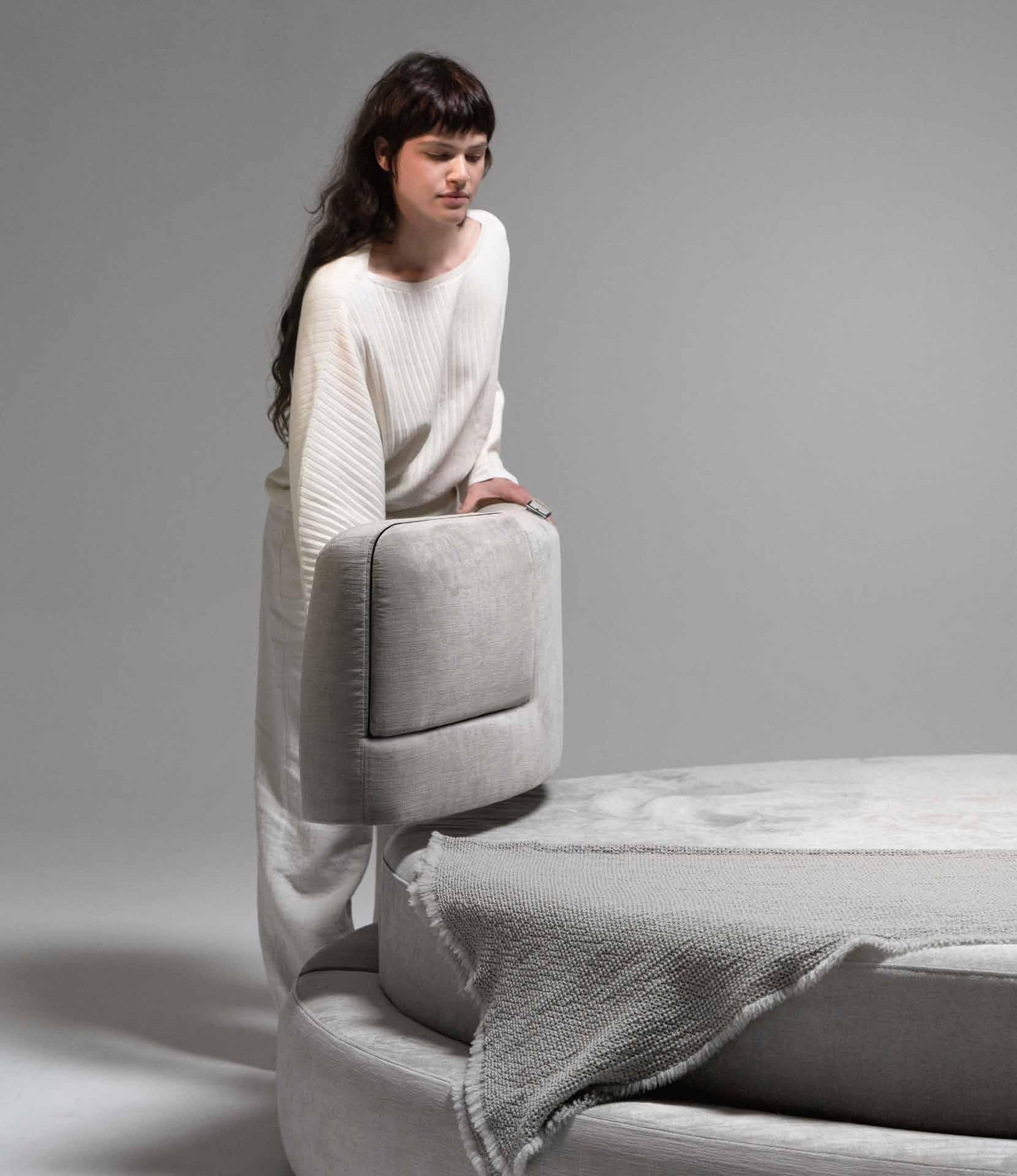 A continuous seamless graphic gesture for an informal style with an accent on comfort. The shape of the headboard offers a unique image that emphasizes the sense of softness.