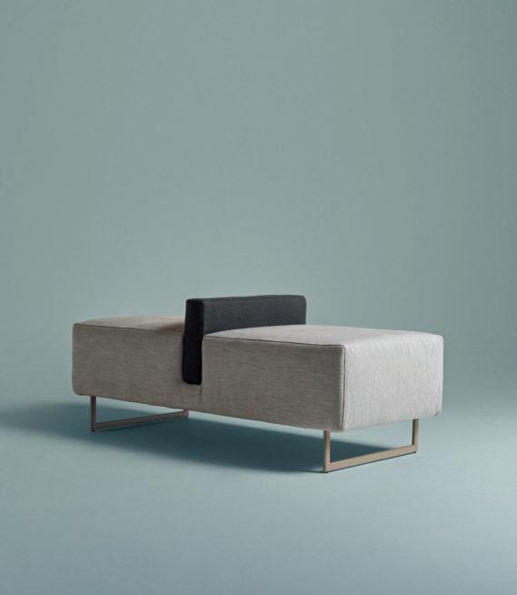 Panca imbottita, monoposto oppure a due o tre posti dalle linee essenziali. La sede del cuscino opzionale, è anche pensata come spazio porta–riviste od oggetti. Ideale per gli spazi domestici ed il contract.