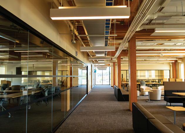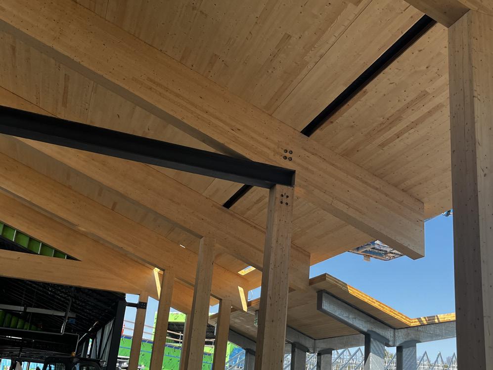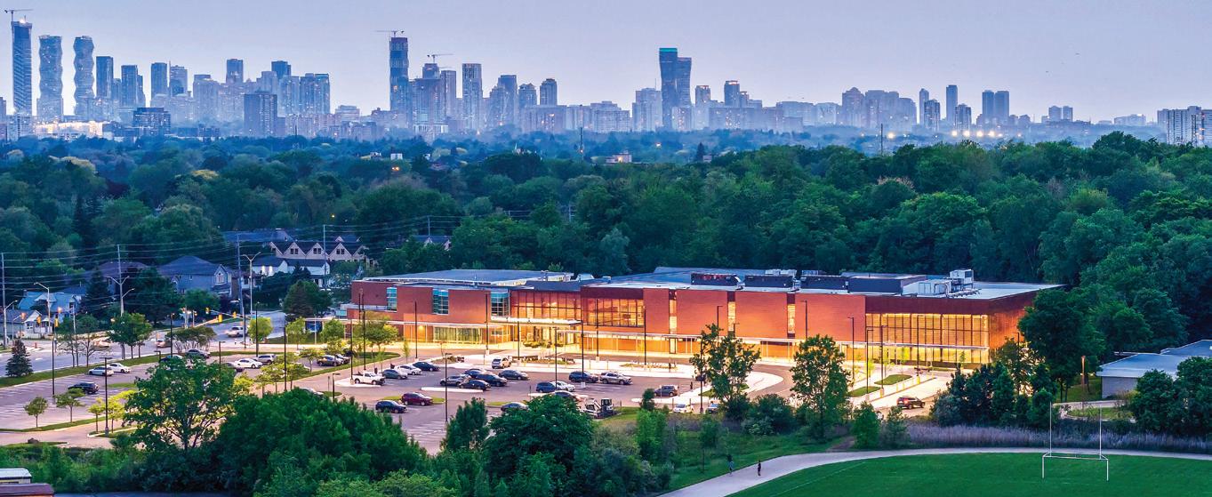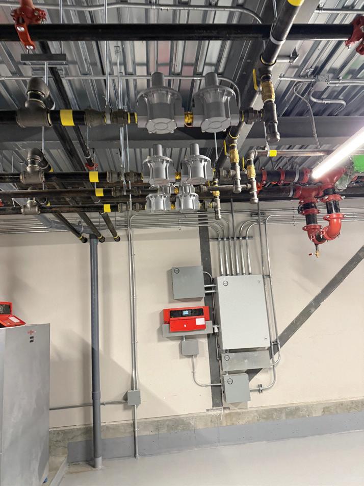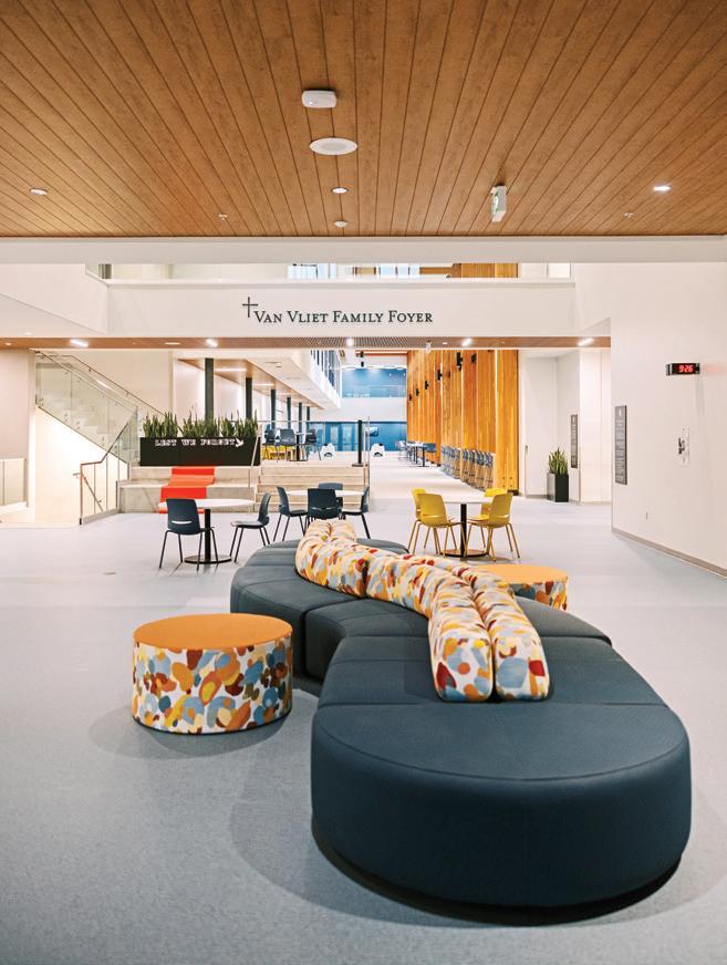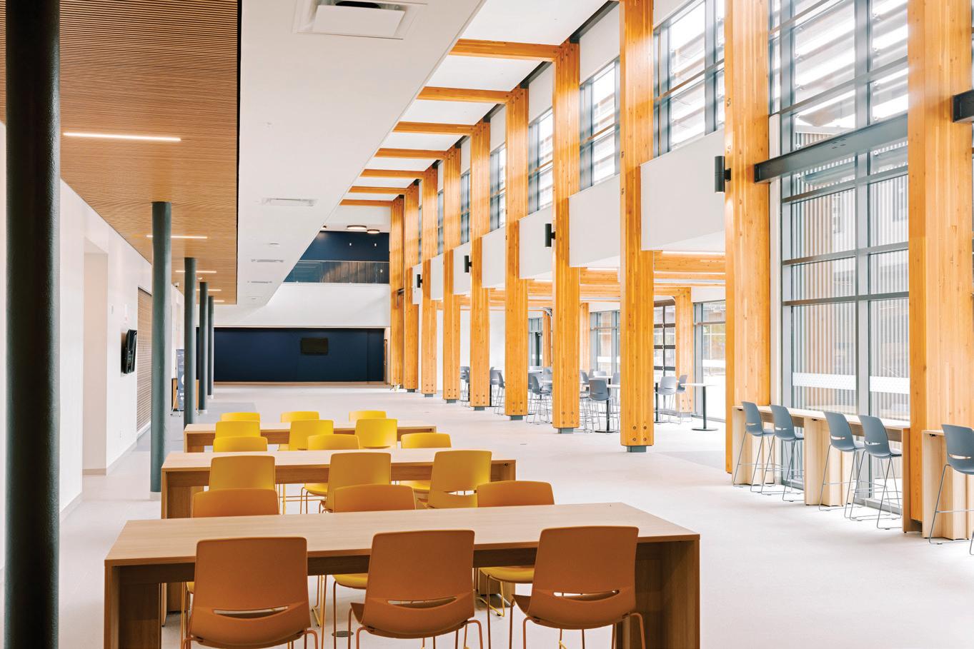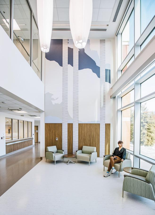 Connecting the new facility to existing campus structures was another interesting aspect. Doiel explains, “The building had to connect on three floors to existing levels, spanning between two buildings. The floor-tofloor heights were all from the 1960s, much lower than current standards, so the main challenge was co-ordinating everything while maintaining proper ceiling heights.” Boeck adds, “We also had to link the tunnels to the central utility plant at the far end of the site. With underground storage tanks and tight grades between two streets, careful planning was essential to get everything aligned.”
