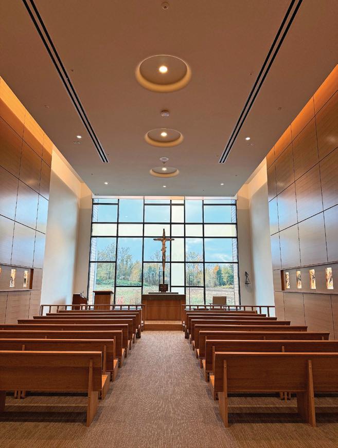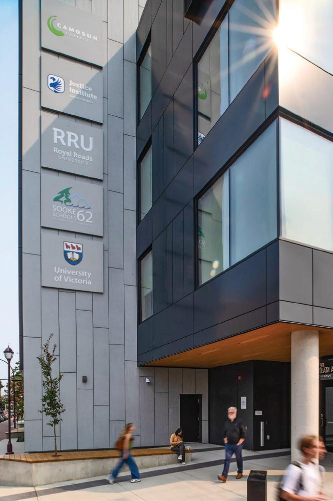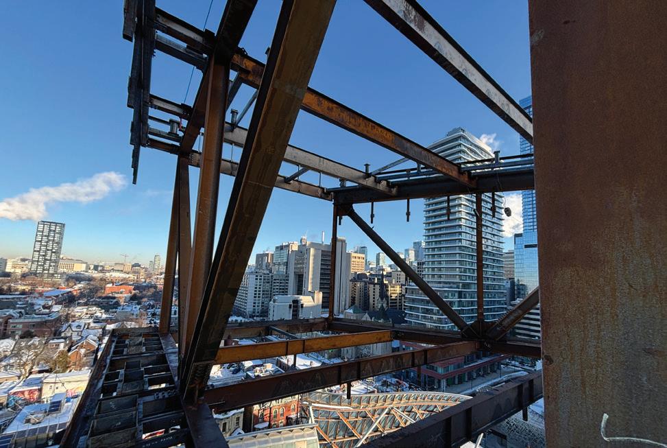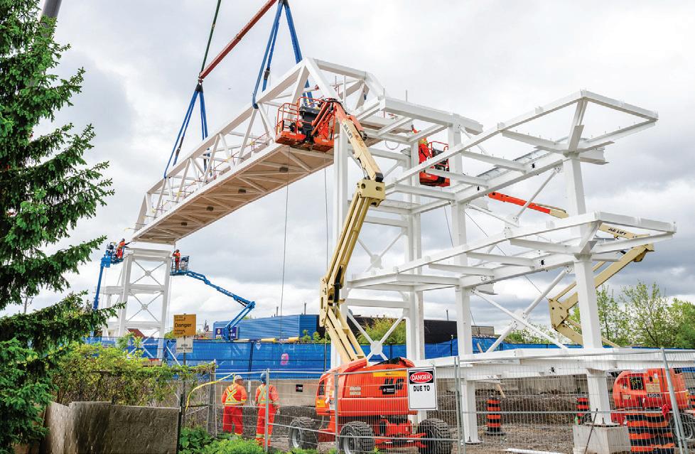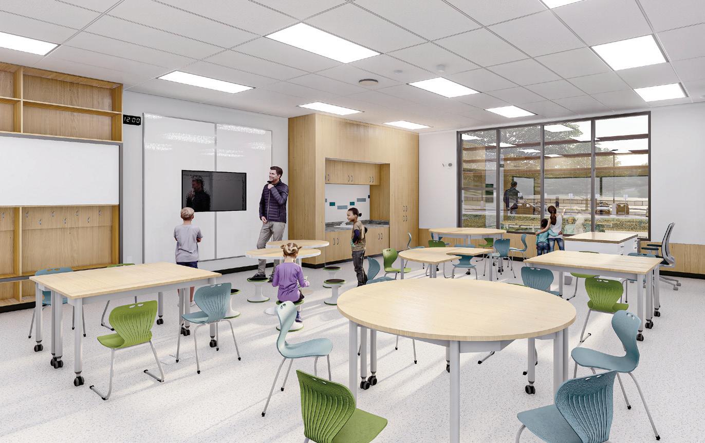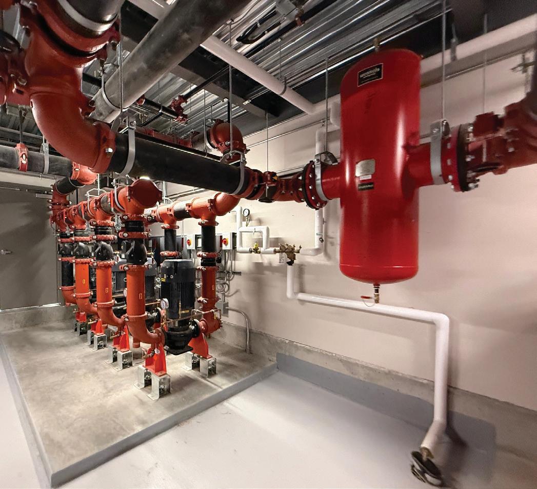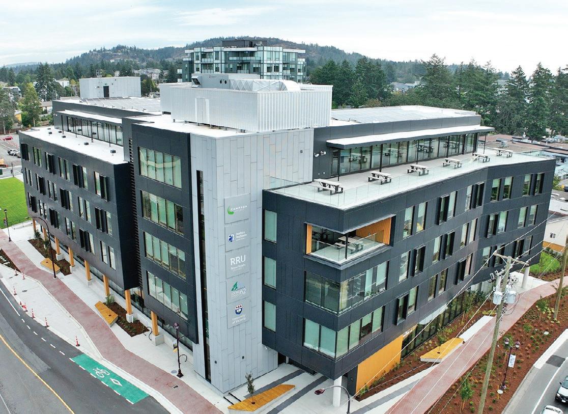 Connecting the new facility to existing campus structures was another interesting aspect. Doiel explains, “The building had to connect on three floors to existing levels, spanning between two buildings. The floor-tofloor heights were all from the 1960s, much lower than current standards, so the main challenge was co-ordinating everything while maintaining proper ceiling heights.” Boeck adds, “We also had to link the tunnels to the central utility plant at the far end of the site. With underground storage tanks and tight grades between two streets, careful planning was essential to get everything aligned.”