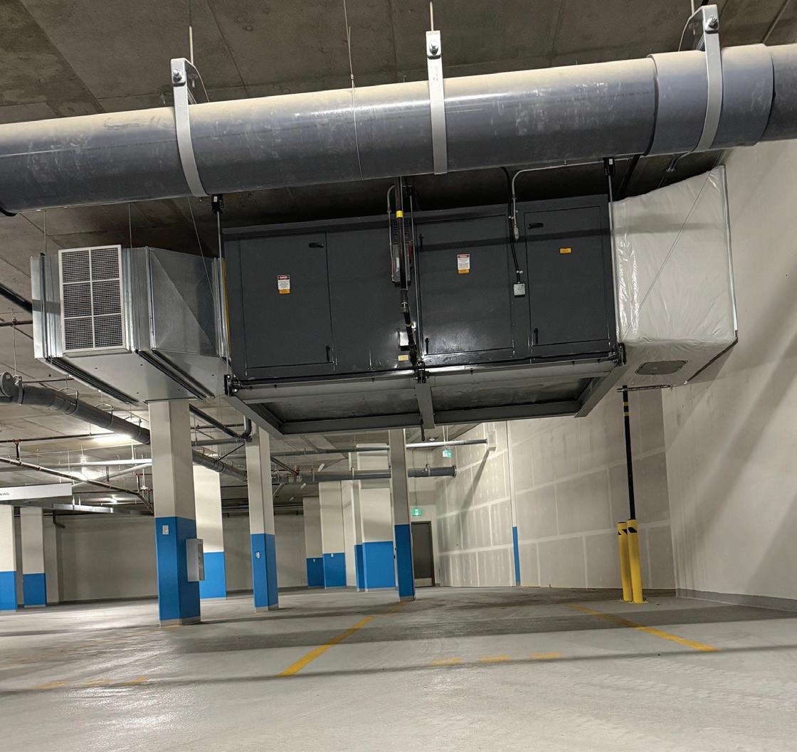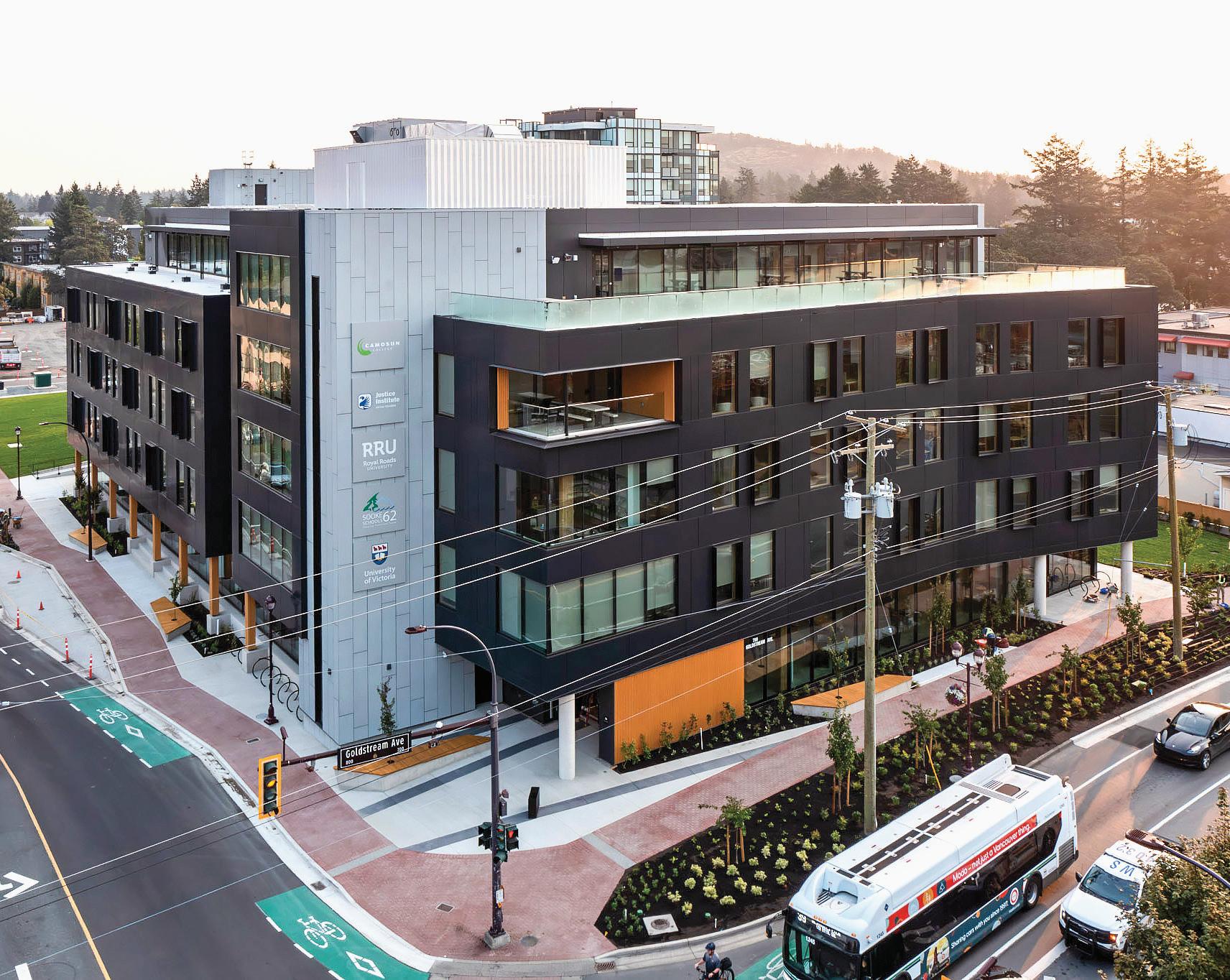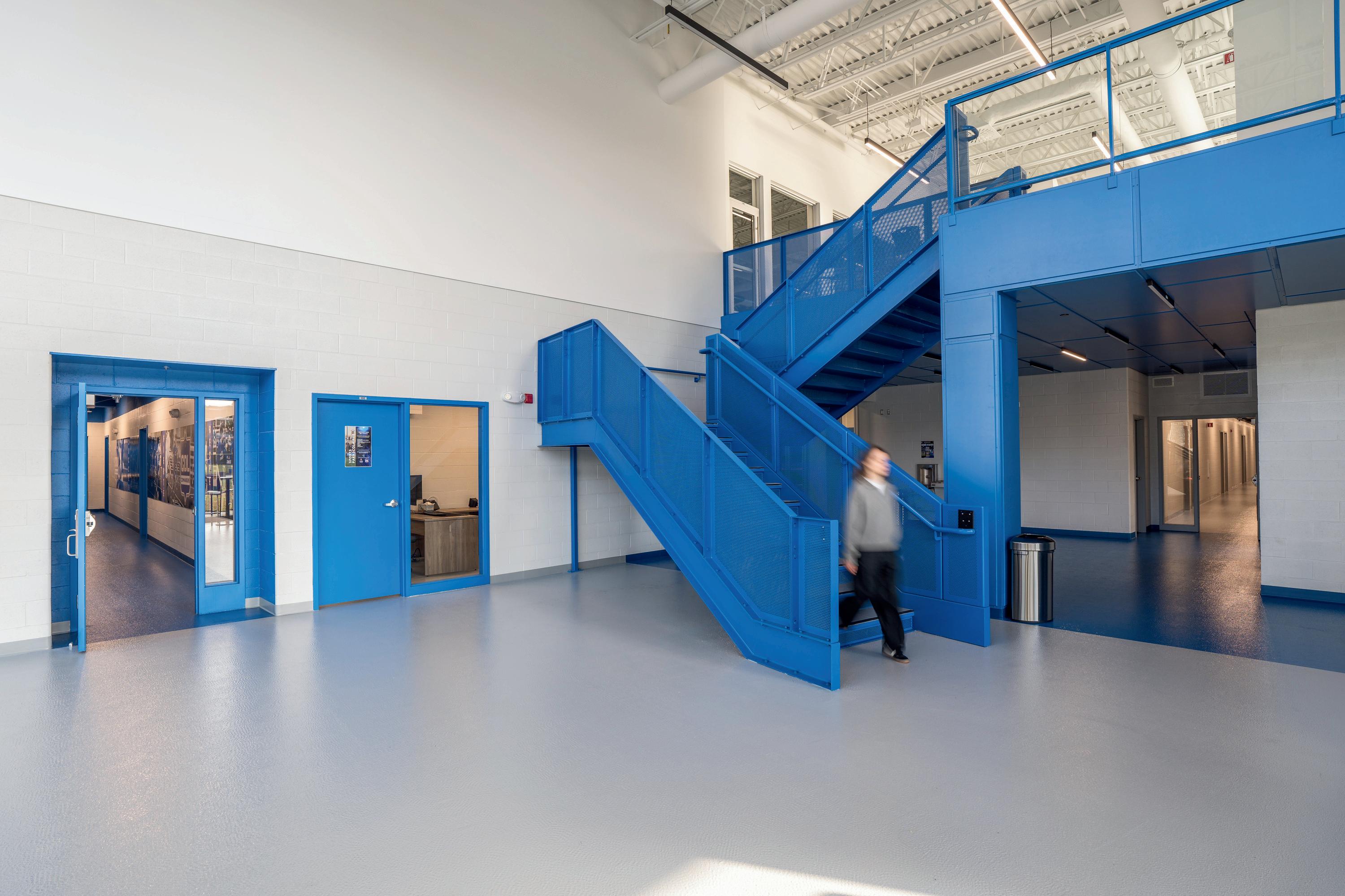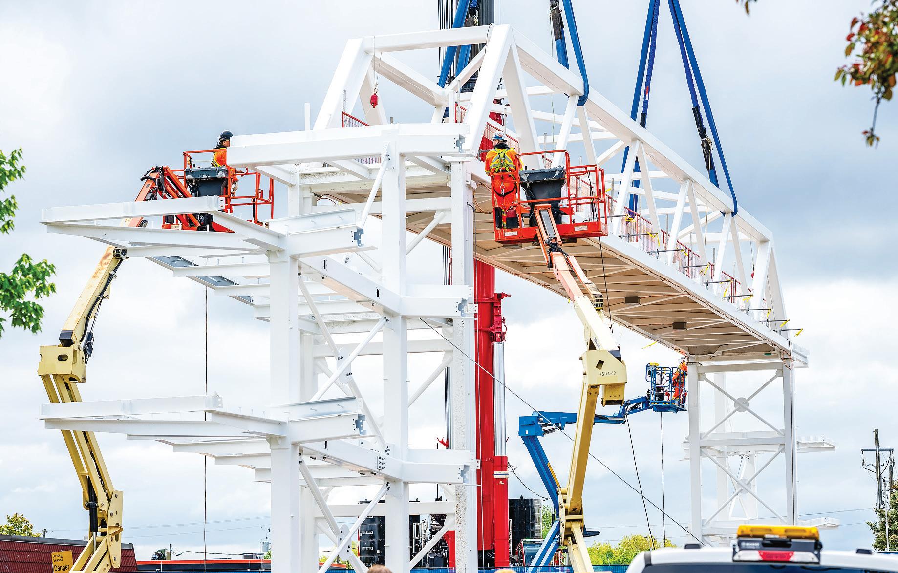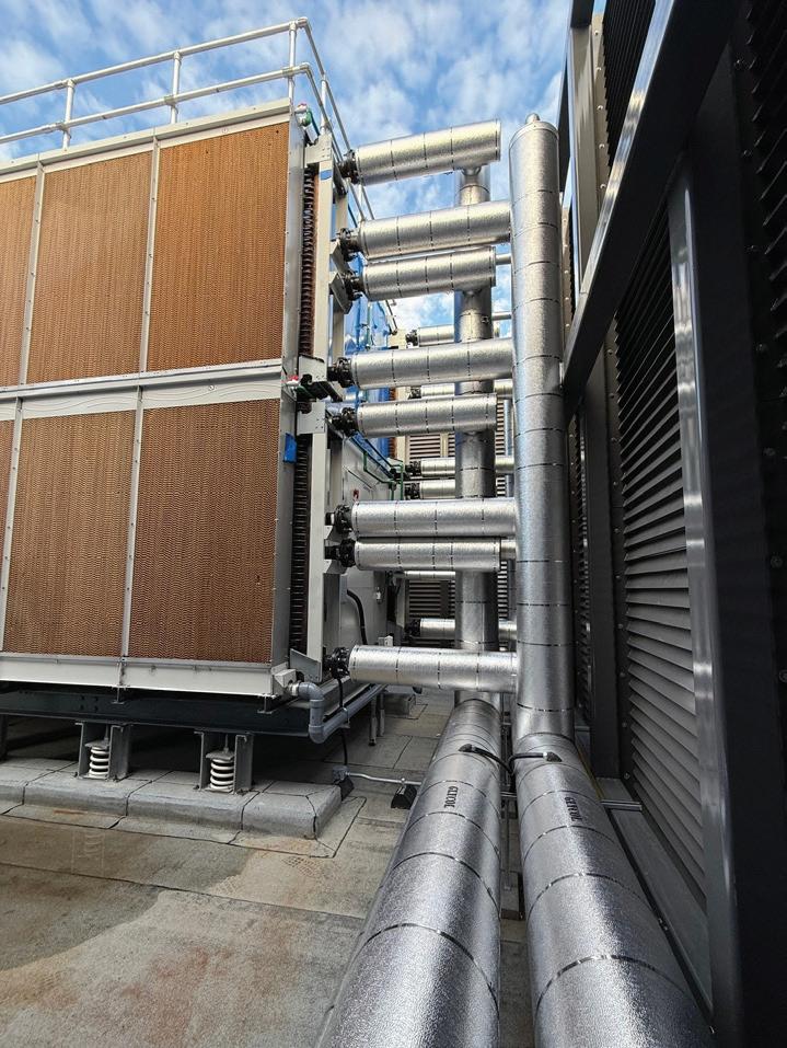 Connecting the new facility to existing campus structures was another interesting aspect. Doiel explains, “The building had to connect on three floors to existing levels, spanning between two buildings. The floor-tofloor heights were all from the 1960s, much lower than current standards, so the main challenge was co-ordinating everything while maintaining proper ceiling heights.” Boeck adds, “We also had to link the tunnels to the central utility plant at the far end of the site. With underground storage tanks and tight grades between two streets, careful planning was essential to get everything aligned.”