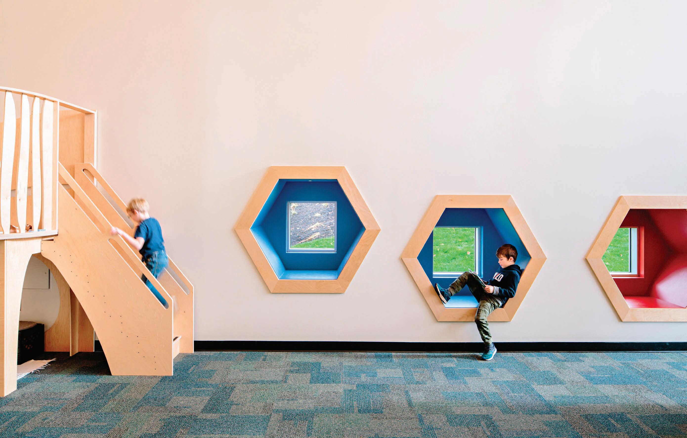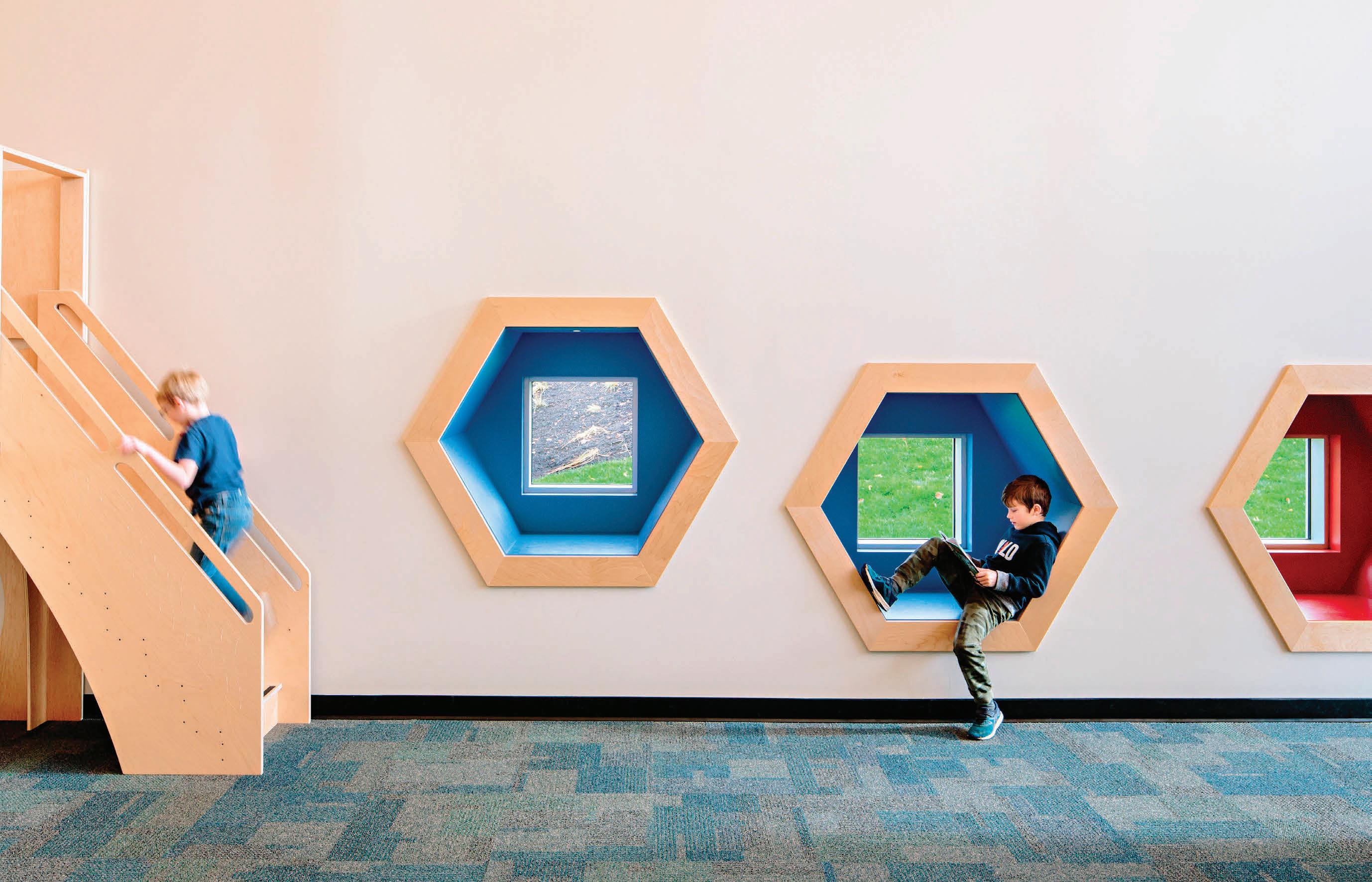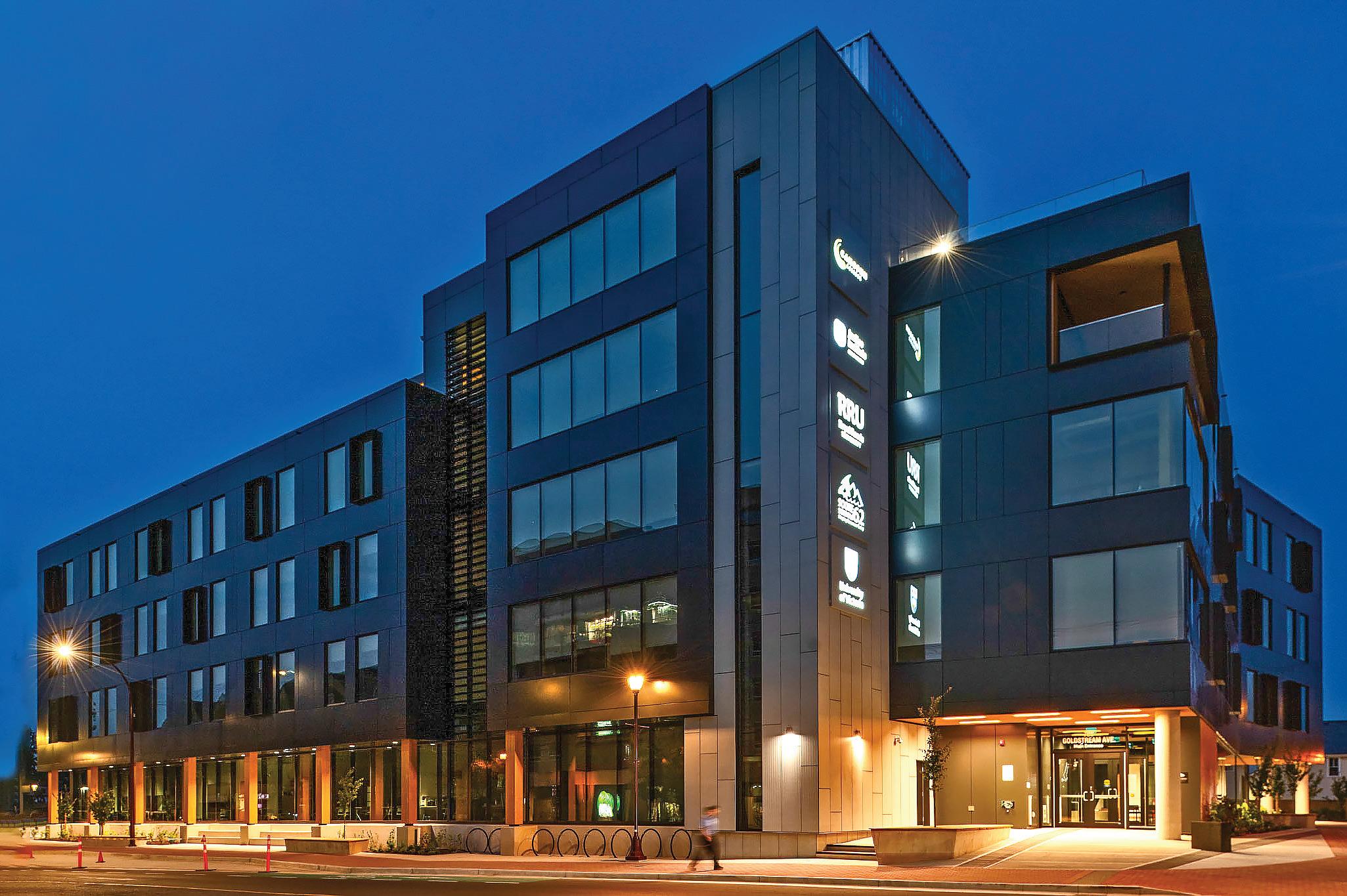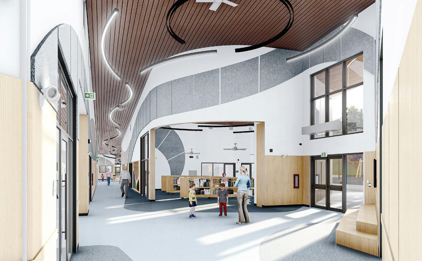 Connecting the new facility to existing campus structures was another interesting aspect. Doiel explains, “The building had to connect on three floors to existing levels, spanning between two buildings. The floor-tofloor heights were all from the 1960s, much lower than current standards, so the main challenge was co-ordinating everything while maintaining proper ceiling heights.” Boeck adds, “We also had to link the tunnels to the central utility plant at the far end of the site. With underground storage tanks and tight grades between two streets, careful planning was essential to get everything aligned.”