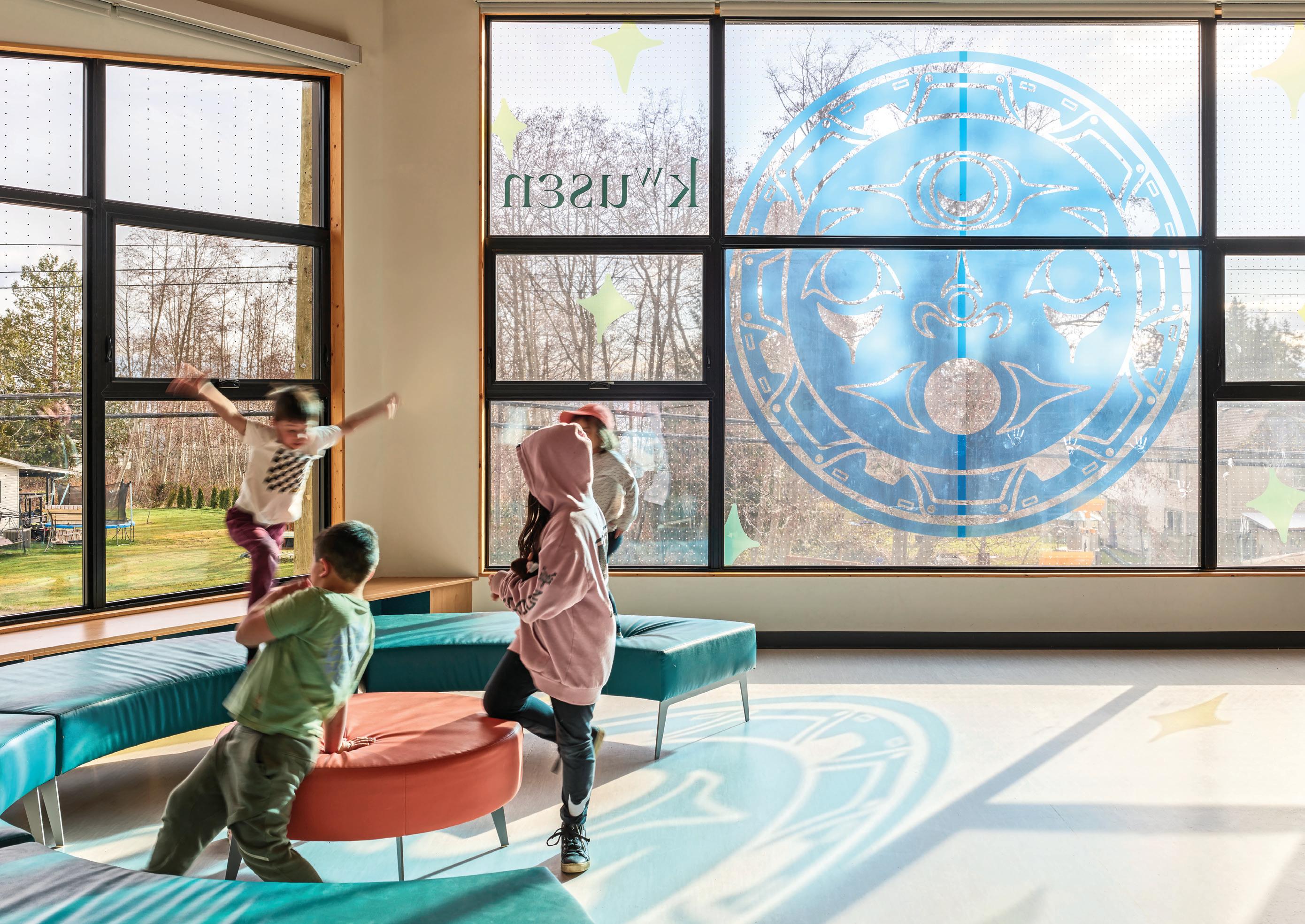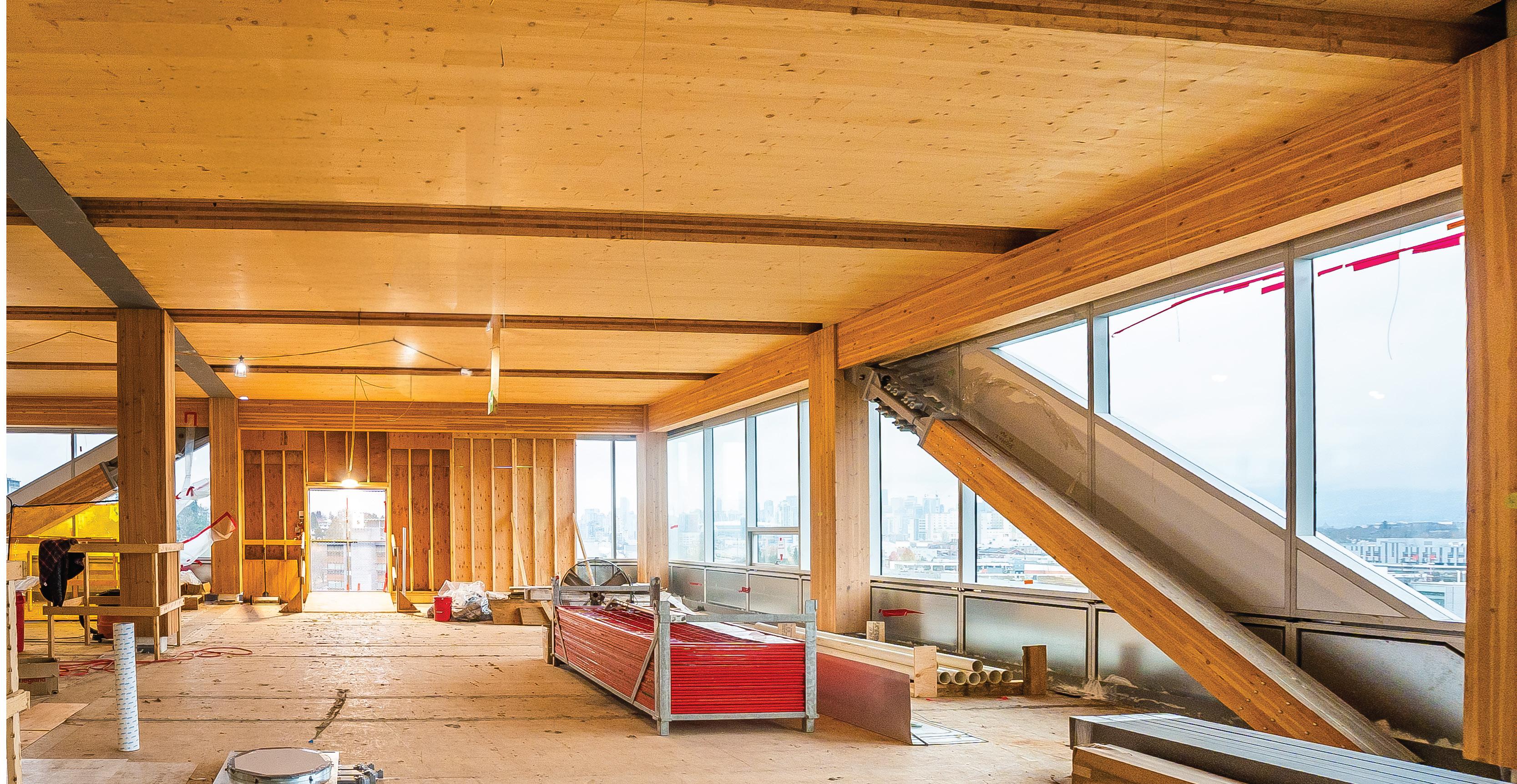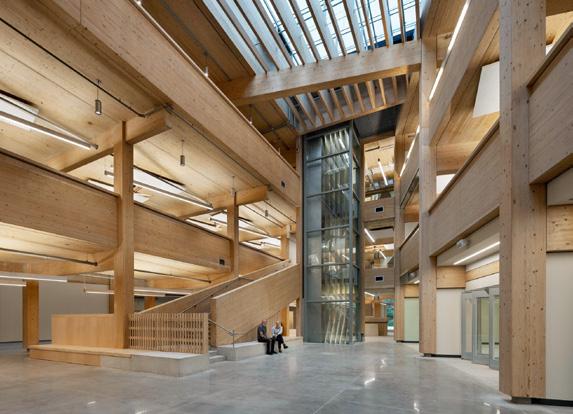 Inside, the Indigenous design narrative continues with the “Tide to Sky” concept, a guiding theme for each floor that reflects stories of land and water from host nation advisors: basement mineral, level one marine, level