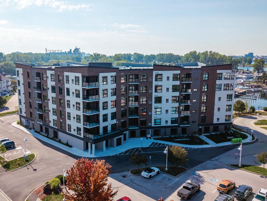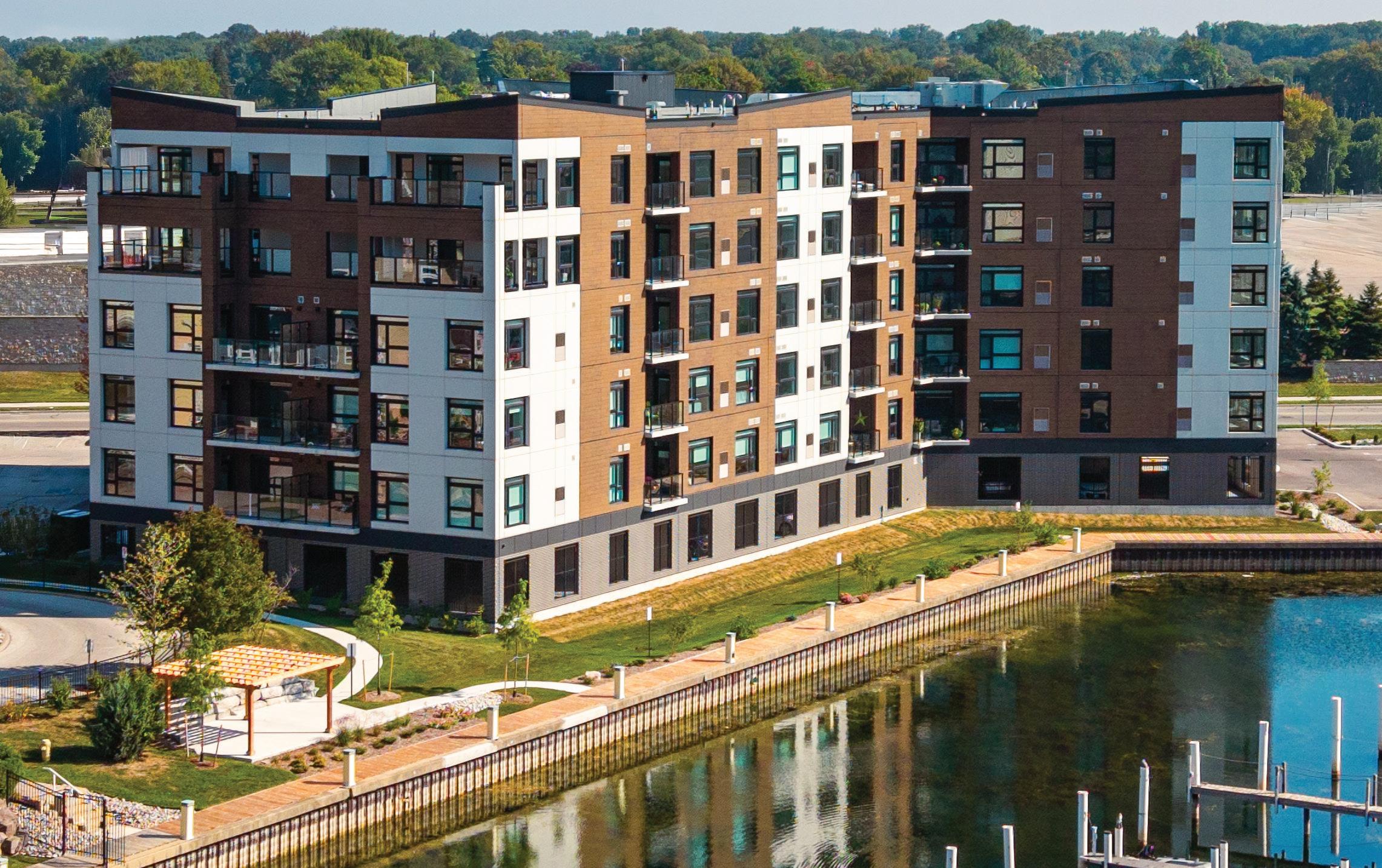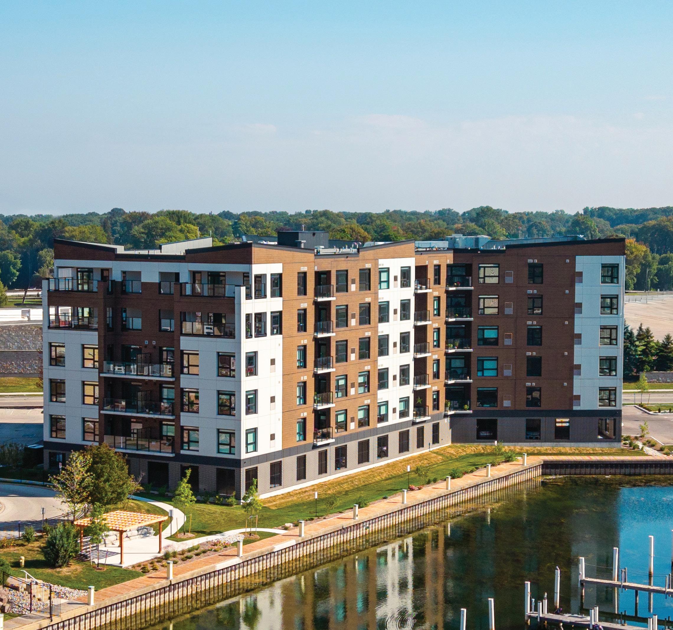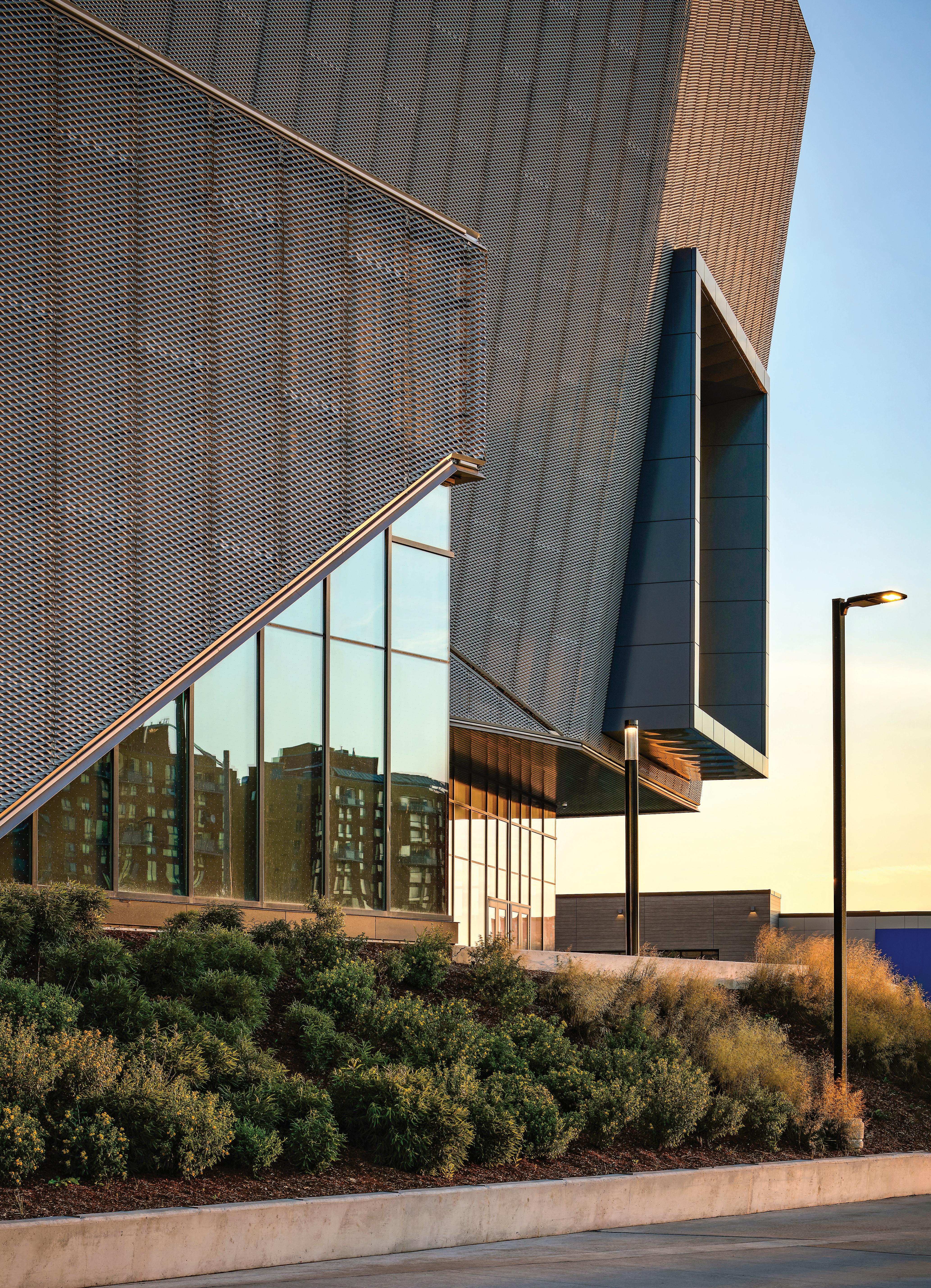 Brenden Wiun, project manager at Clark Builders, notes that 20 months of pre-construction was spent before site work began in January of 2022, and he adds that site conditions were fortified by the installation of plastic cells in landscaped areas to slow the rate of water discharge.