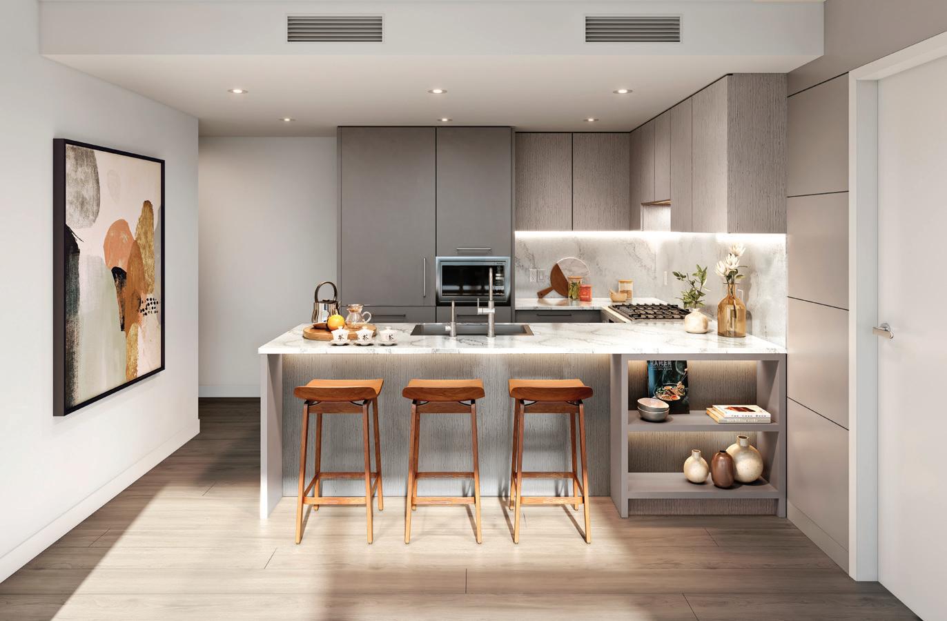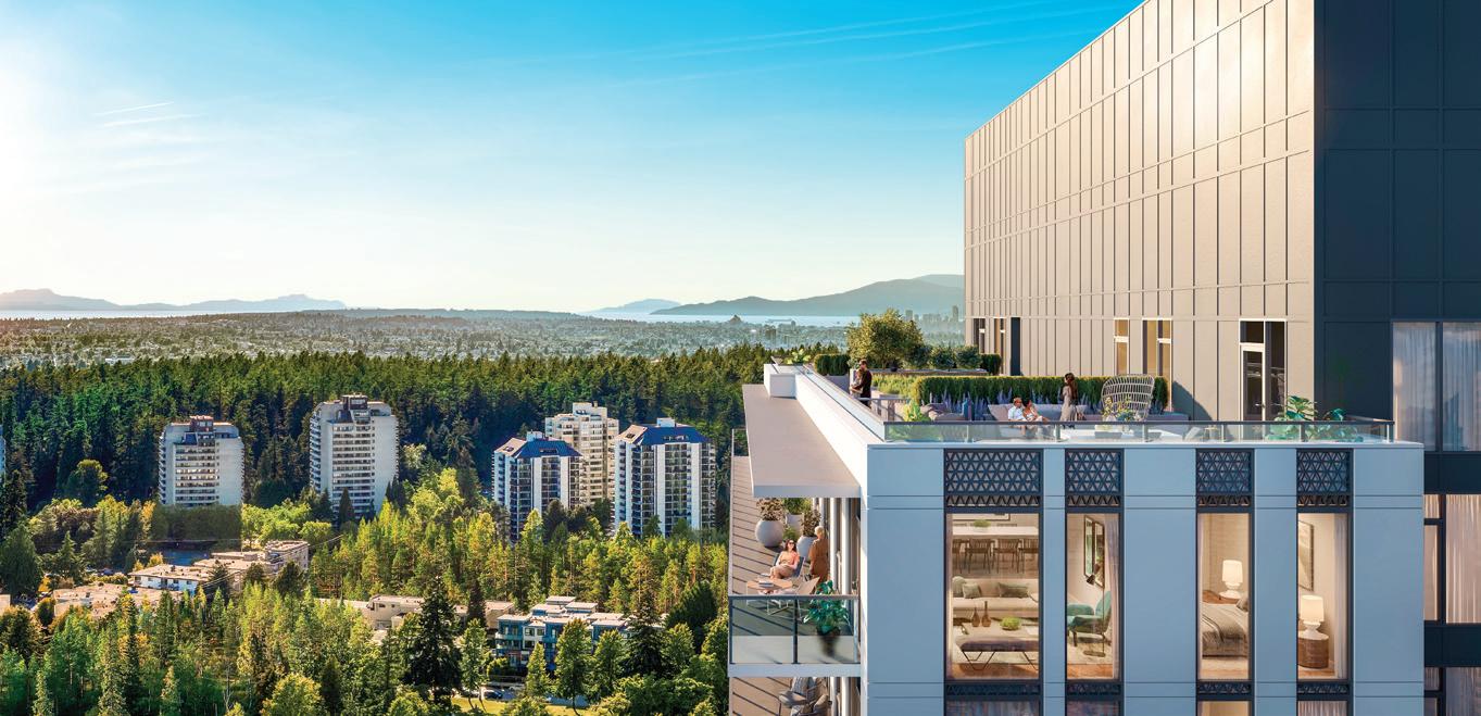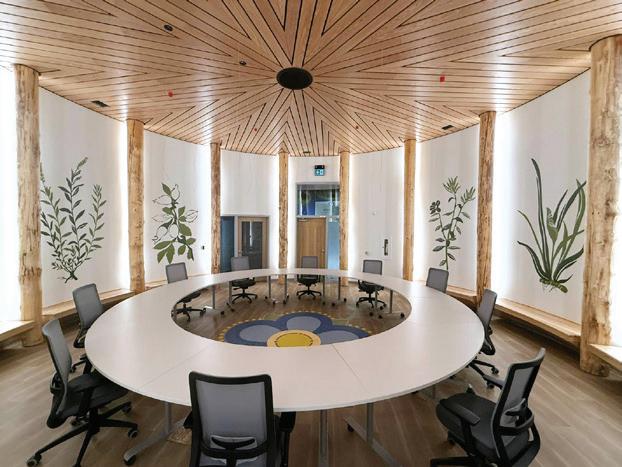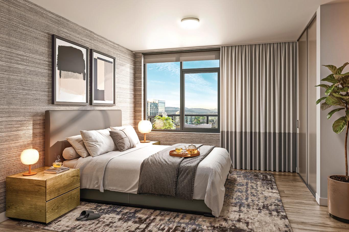 two shell, level three medicine, level four feather, level five forest, and level six mountain. This theme is expressed through colour palettes, artwork, and finishes, creating a cohesive journey from the building’s foundation to its rooftop garden.