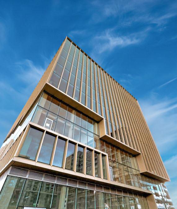 The exterior also radiates colourful hues, due to 4,700 interlocking façade shingles that change colour based on sun exposure, and this too was a rational solution. Michael Henderson, principal at hcma, explains, “The oval form cantilevers out on one side and cantilevers in on the other to impart a dynamic appearance; and because it was a twisting shape, shingles were the ideal cladding solution.”