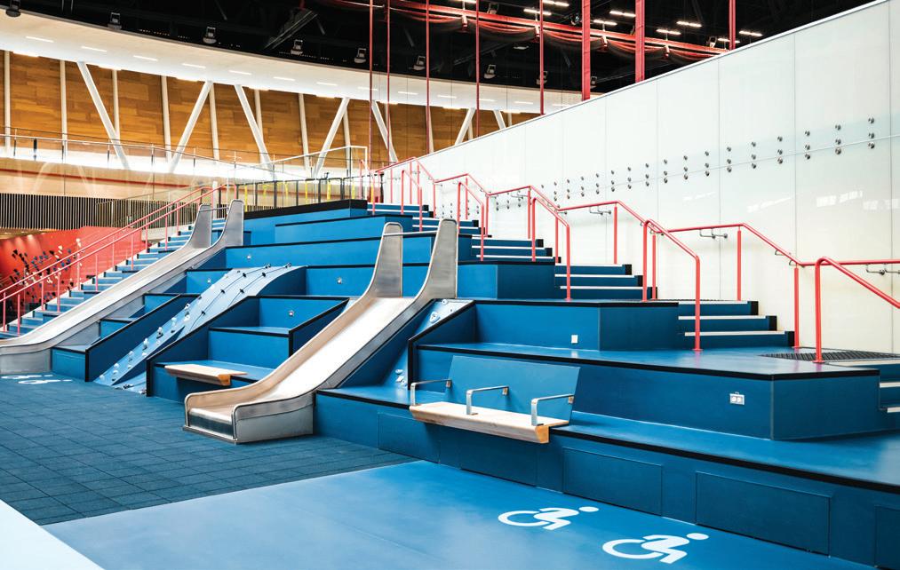 New aquatic amenities further enhance the user experience. The addition of a cold plunge pool complements the existing sauna and hot tub, supporting contemporary wellness programming. McConaghie adds that the original pool did not meet current regulations for a 50-metre facility, which was addressed during the rehabilitation. “The whirlpool was also fully redesigned, and the cold plunge was added.”