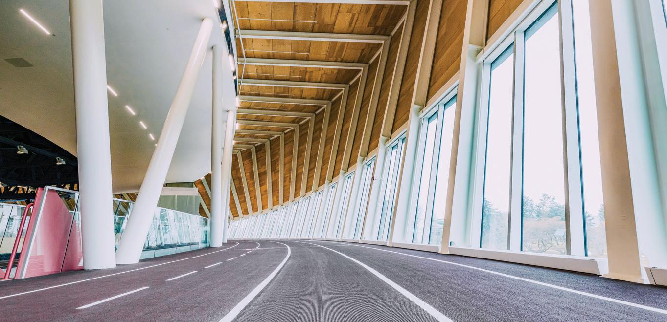 Matthew Everett, general supervisor, integrated infrastructure services at the City of Edmonton, says of the recreation centre’s oval form designed through an architectural partnership between hcma architecture + design and Dub Architects (in association with FaulknerBrowns), “it was influenced by the programming it was built to support, specifically the velodrome and indoor running/walking track.”