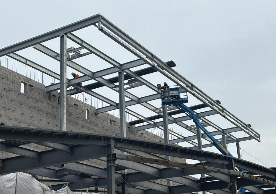 The facility’s decking was also a challenge as it required the careful bending and twisting of 40-foot panels, followed by temporary wrapping to protect them while the building was still exposed to the elements.