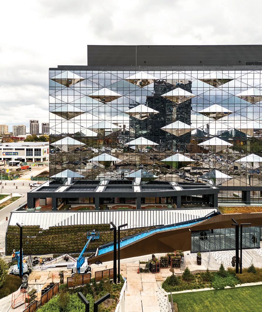 connected modules sitting on top of the podium, which also allowed many of the units to have corner views.” With a largely context-less site, including a GO Transit depot, parking, and open space, the design generates its own context while creating connections to the surrounding streets and community.