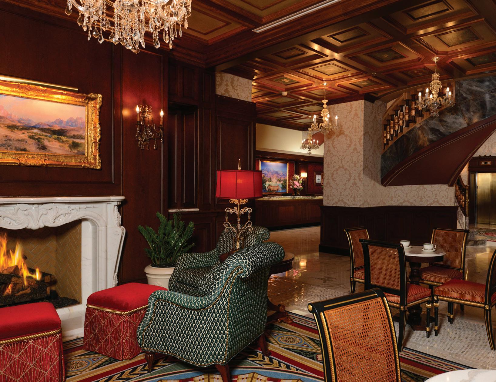 The Main lobby has been expanded and reimagined with welcoming amenities such as plush seating areas around a cozy fireplace and space to conduct business, as well as a grand floating staircase and entry that honors all the historic elements that guests expect.
