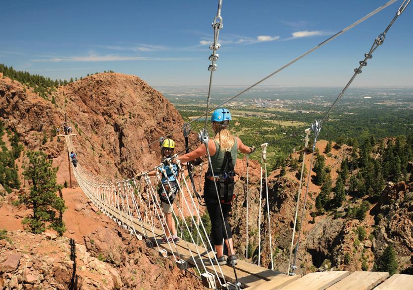 The Broadmoor Soaring Adventure , one of the top-five zip line courses in the world, offers a thrilling experience as guests safely soar high above rocky outcroppings and forested canyons on zip lines ranging in distance from 250 to 1,800 feet, with some moderate hiking. Tours include up to eight participants with two professional guides. Located at The Broadmoor’s Seven Falls, there are two courses to choose from, both with five thrilling zip lines: The Woods Course with heights of 150 feet and an opportunity to soar over a picturesque waterfall, and The Fins Course with heights of over 500 feet, along with two 200-foot suspension bridge crossings, and a thrilling 180-foot controlled rappel at the end.