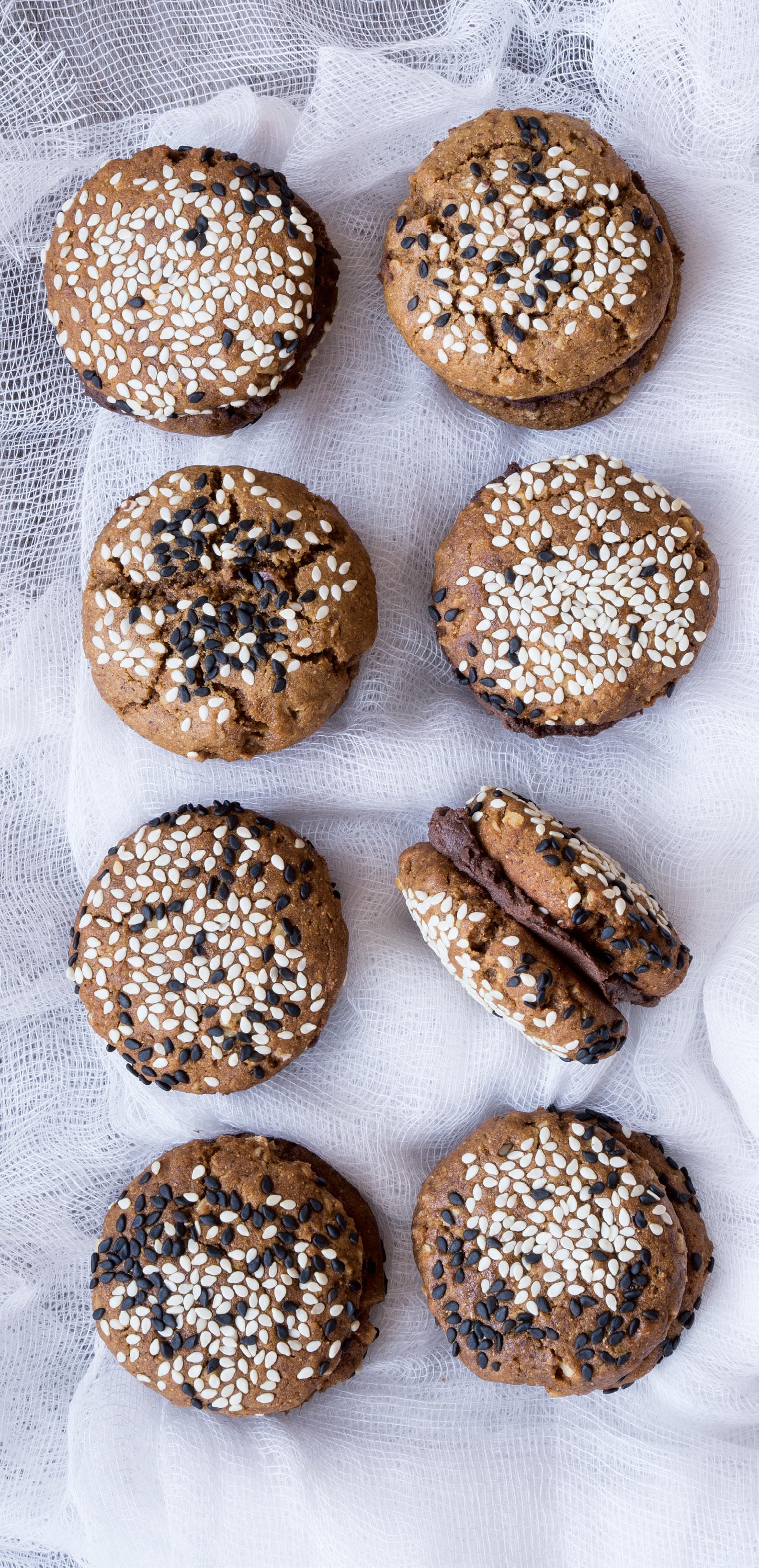 Chocolate-tahini and ginger sandwich cookies, 18
