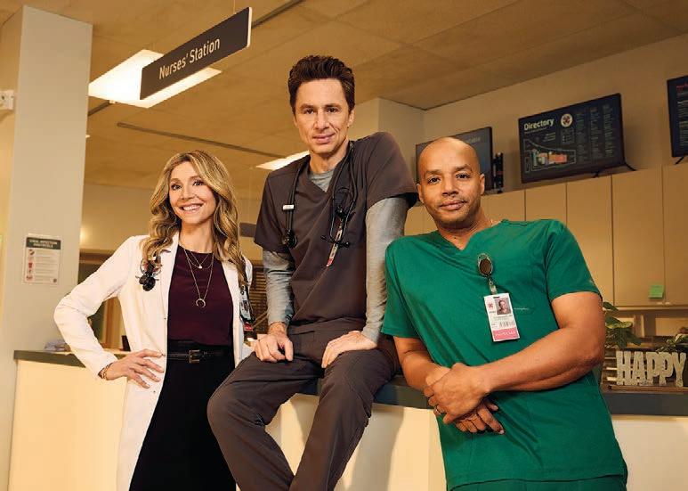 The decade-and-a-half time jump, says Chalke, allowed for creative freedom in terms of where life had taken these doctors. “Everybody as human beings have had so much more life experience, and I think for Donald, Zach and I to be playing the teachers this round has been really fun.” The actress also praises Lawrence’s ability to inject optimism in all his projects.