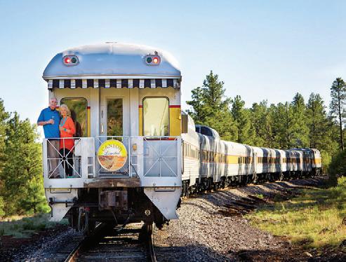 Step back in time by stepping aboard the Grand Canyon Railway. Enjoy breathtaking views, personal attendants sharing regional information and centuries-old folklore, while roaming musicians play tunes of the Old West. All on a fully restored, turn-of-the-century historic train. Start your grand adventure by calling 1-800-THE-TRAIN or visit thetrain.com. MAKE A