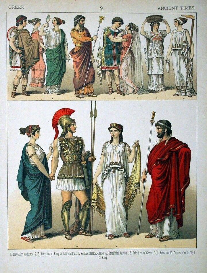 The Greek nation is a Latin nation. Before the existence of the ancient Greeks, there was the Minoan civilization. People in this era have begun to develop from previous times, they already wear clothes made from cloth, no longer wearing leather or animal fur The characteristic of the Minoan people is that they have curly hair, men from childhood wear it like a belt to have a small waist so that their shoulders look bigger. because in that era a small waist and big shoulders were used as the beauty standards of that era, the smaller the waist shape, the more attractive it would look in the eyes of women of that era Men's clothing only uses wrapped cloth or men's skirts called perizoma. for women who also have curly hair, wear something like a bolero crop that only reaches above the chest so it is open, and wear an A line skirt with layers that cover the entire leg. Minoan women did not have to wear belts to reduce their waists. Minoan people are physically very strong, have creative works made from terracotta clay The Minoan people were able to make clothes that were constructive or other names, cut or sewn. Clothing in the Greek nation can be worn by women or men. Like the tunic in ancient Greek times, it was the peplos or chiton. This peplos or chiton has 2 different types, namely doric chiton (vertical shaped) and ionic chiton (horizontal shaped) Doric chiton which extends downwards and has a camisole or draped neck shape, wavy naturally due to the influence of the sides of the shoulders which are joined together using a rope as well as the side seam, after which a belt is worn at the waist. while the ionic chiton is a fabric that extends to the side, joining it with other fabric with a rope to form a circle for the neck to enter, which is straight and not wavy to unite the side seams using rope to close them. The result is that the side is left with strands of fabric and the length of the garment is only half the length and doesn't reach the bottom. then wear a belt around the waist too.