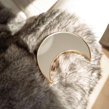 The body part of the crescent moon on the clothes is not that big while the body part of the crescent moon mirror is wider.