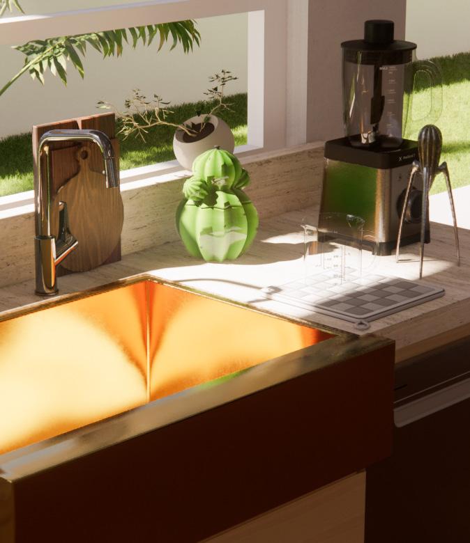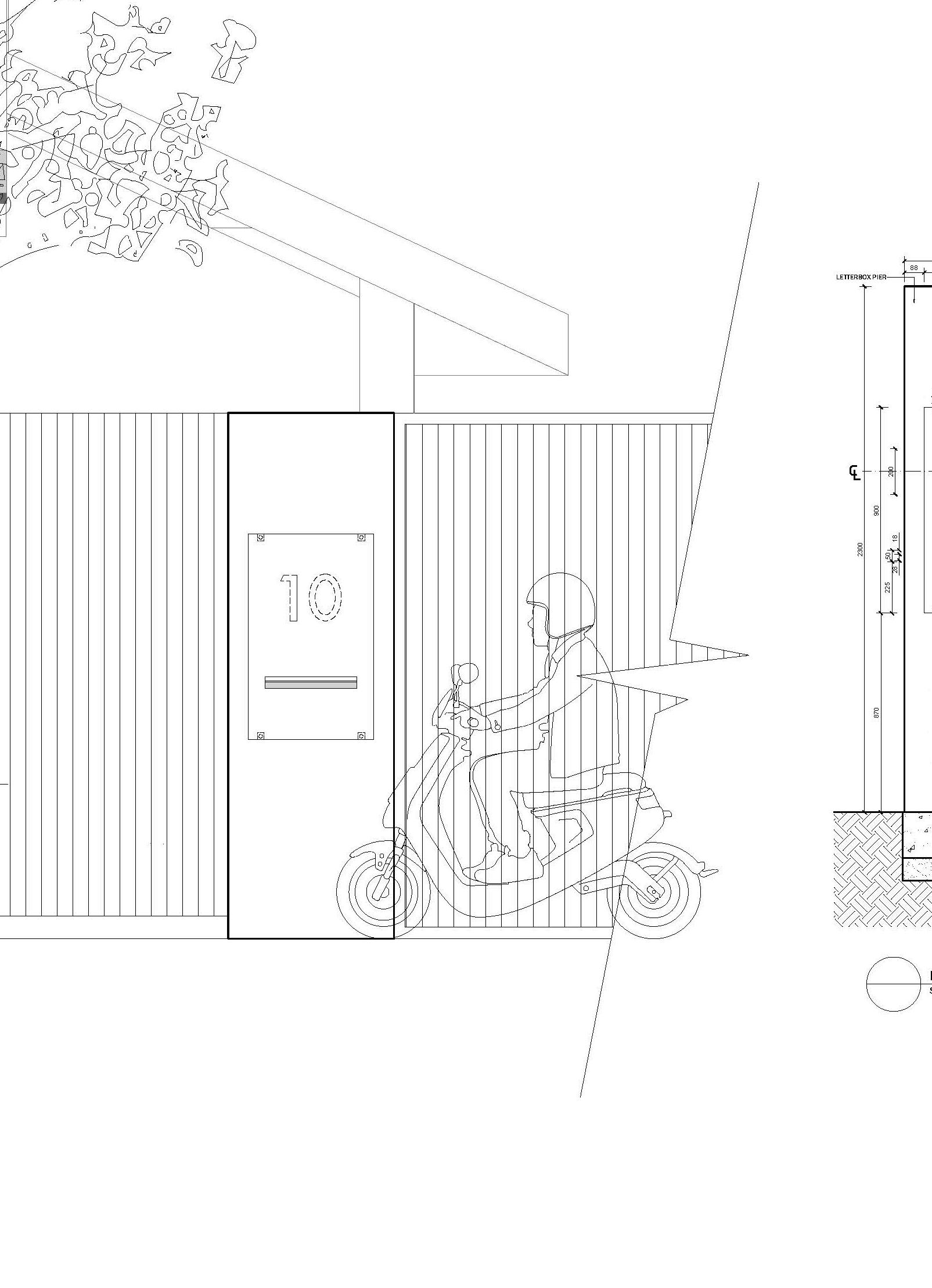 house, one would be greeted by the central courtyard’s lush greenery and mellow trickling of water. Targeting the “always in the room” dilemma, the courtyard would draw the family to sit by the garden in hopes to bridge their relationship. With the strategic intent of creating a light and air well both illuminating and cooling the house, reducing electrical wastage.