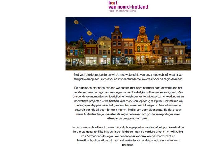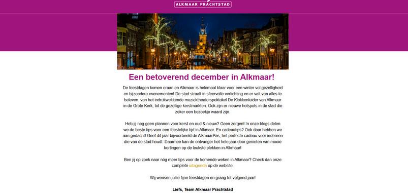 In 2024 heeft Alkmaar Marketing opnieuw verschillende nieuwsbrieven gedistribueerd om verschillende doelgroepen te informeren over alles wat er in Alkmaar gebeurt.
