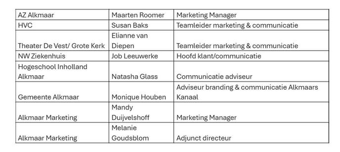 Grote maar ook kleine organisatoren binnen de Gemeente Alkmaar, de gemeente, veiligheidsorganisaties en horeca.