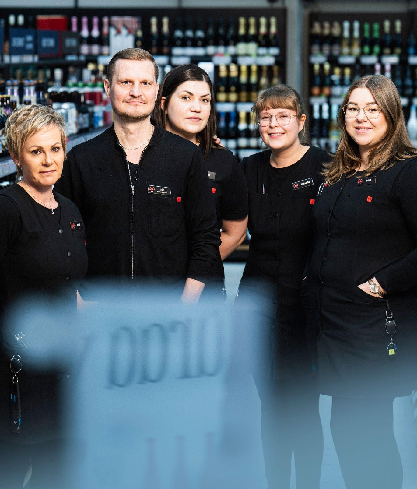Hos oss jobbar 4–6 fast anställda, samt säsongsarbetare. Till butiksgruppen hör också Alko i Eteläkeskus och Saarenkylä.