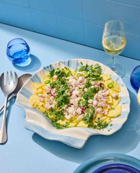 Ceviche är marinerad fisk som kan serveras på chips, i tacos eller krustader, små degskålar. Se recept på nästa uppslag. 1.