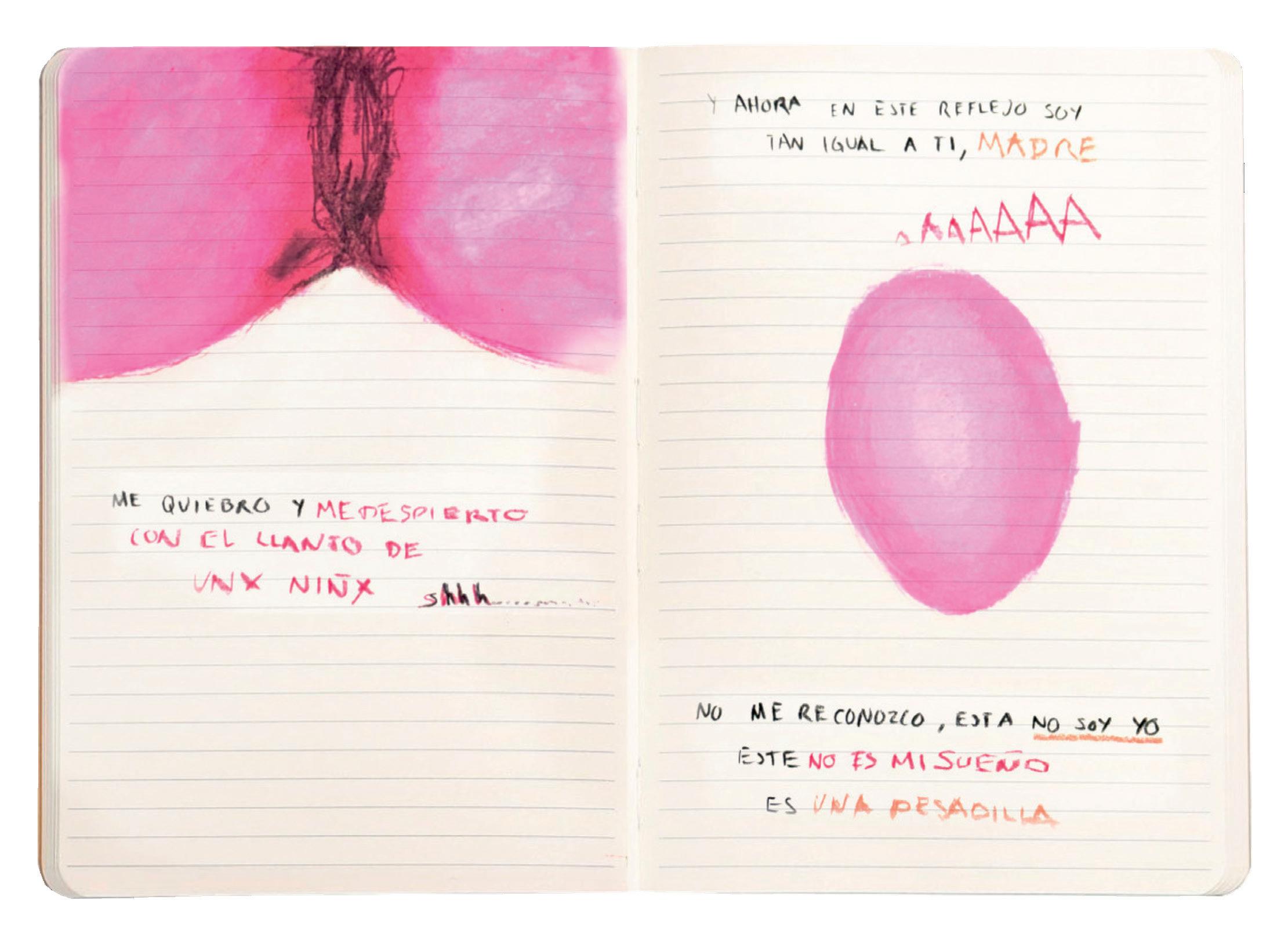 En estos sueños, la artista nace de su propio cuerpo. Daniella se enfrenta al rol de madre sin desearlo, un tema que resuena tanto en sus sueños como en su vida consciente, entrelazándose con los mitos de género, el modelo familiar y las complejidades de la maternidad. La obra desafía la idea de la maternidad como destino inevitable y examina la angustia y el temor que pueden acompañar a esta expectativa social. Estamos felices de presentar Sueños de leche como la pieza de Spotlight en esta edición. Consideramos que no solo es un testimonio de estos miedos y deseos conflictivos, sino también una crítica a las presiones socioculturales sobre la maternidad. Esta bitácora en carboncillo y pasteles, sobre hojas de cuaderno, evoca una sensación de intimidad y vulnerabilidad, invitando al espectador a reflexionar sobre las expectativas impuestas por la sociedad y a cuestionar las narrativas tradicionales sobre la maternidad todo a través de un sueño.