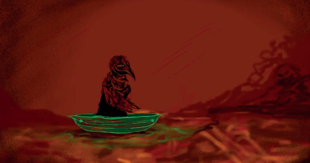 Allá donde habitas, las cosas son de colores que ríen, hay peces enormes que recorren el cielo y emiten un sonido apocalíptico. Saturno se asoma más grande que el sol. Las montañas se mueven según su estado de ánimo. No hay tiempo, pero sí muerte.