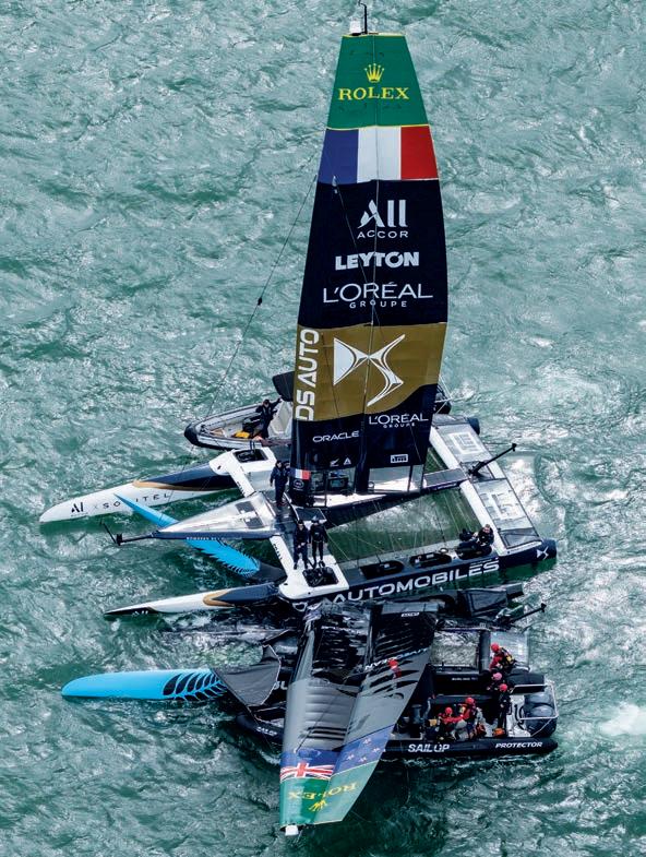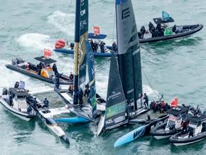 The opening day of the New Zealand Sail Grand Prix was brought to an abrupt halt by a major collision between the home team, the Black Foils, and DS Team France. Following a new split-fleet format the following day, Emirates GBR went on to race against Australia and Spain in the three-boat final... see page 6