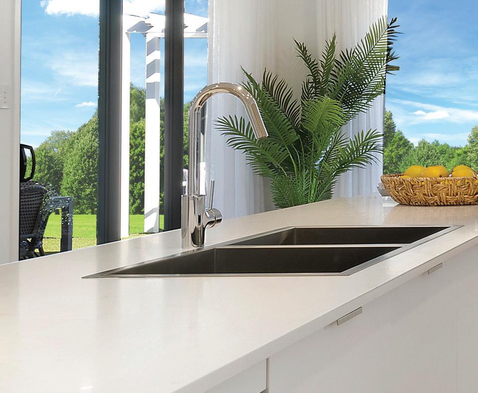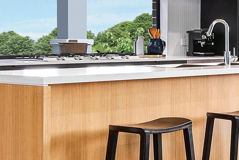 Upgrade the front edge strip and two front side edges of the island bench to 40mm Caesarstone® engineered quartz from the builder’s range